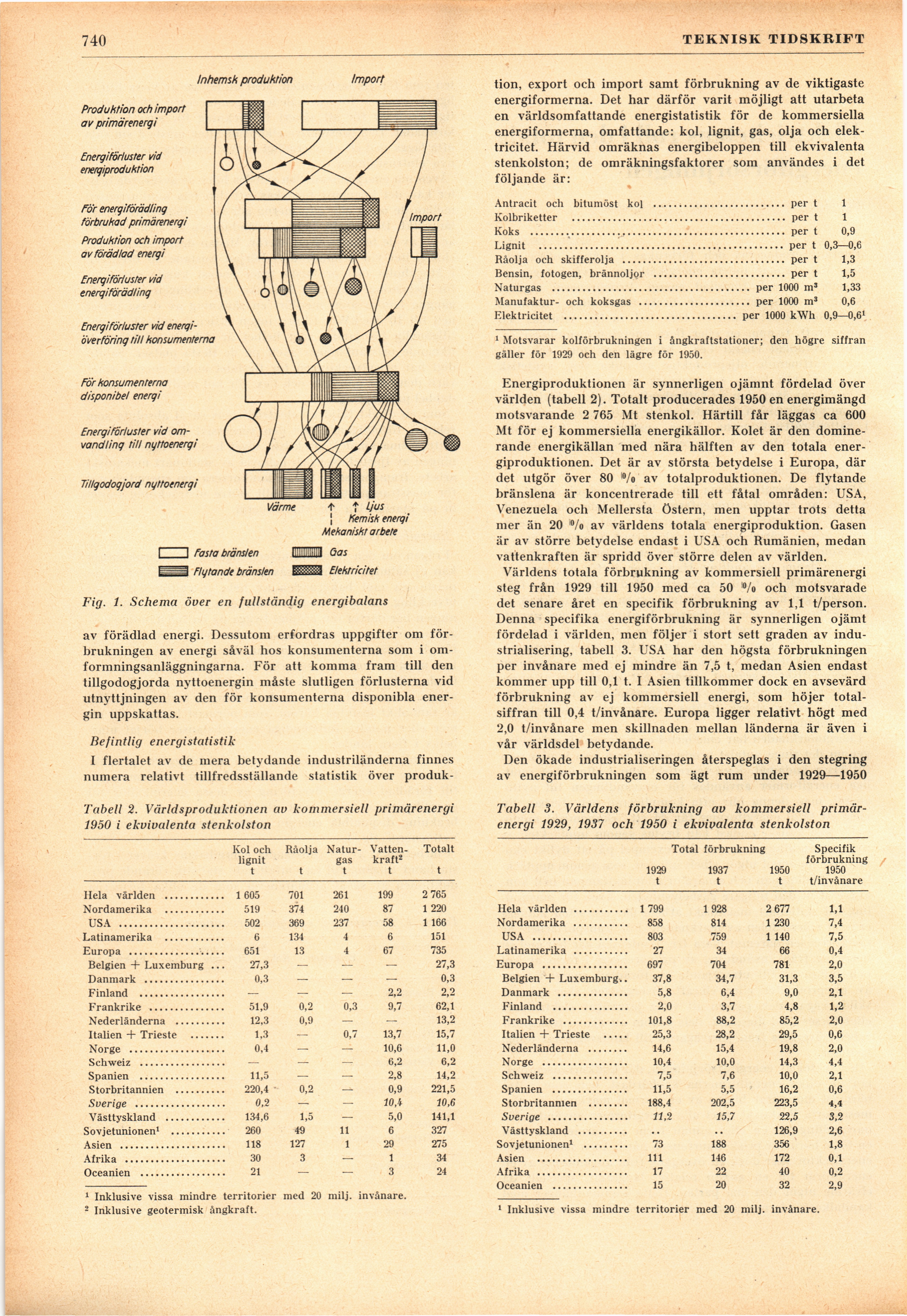 världen (tabell 2). Totalt producerades 1950 en energimängd