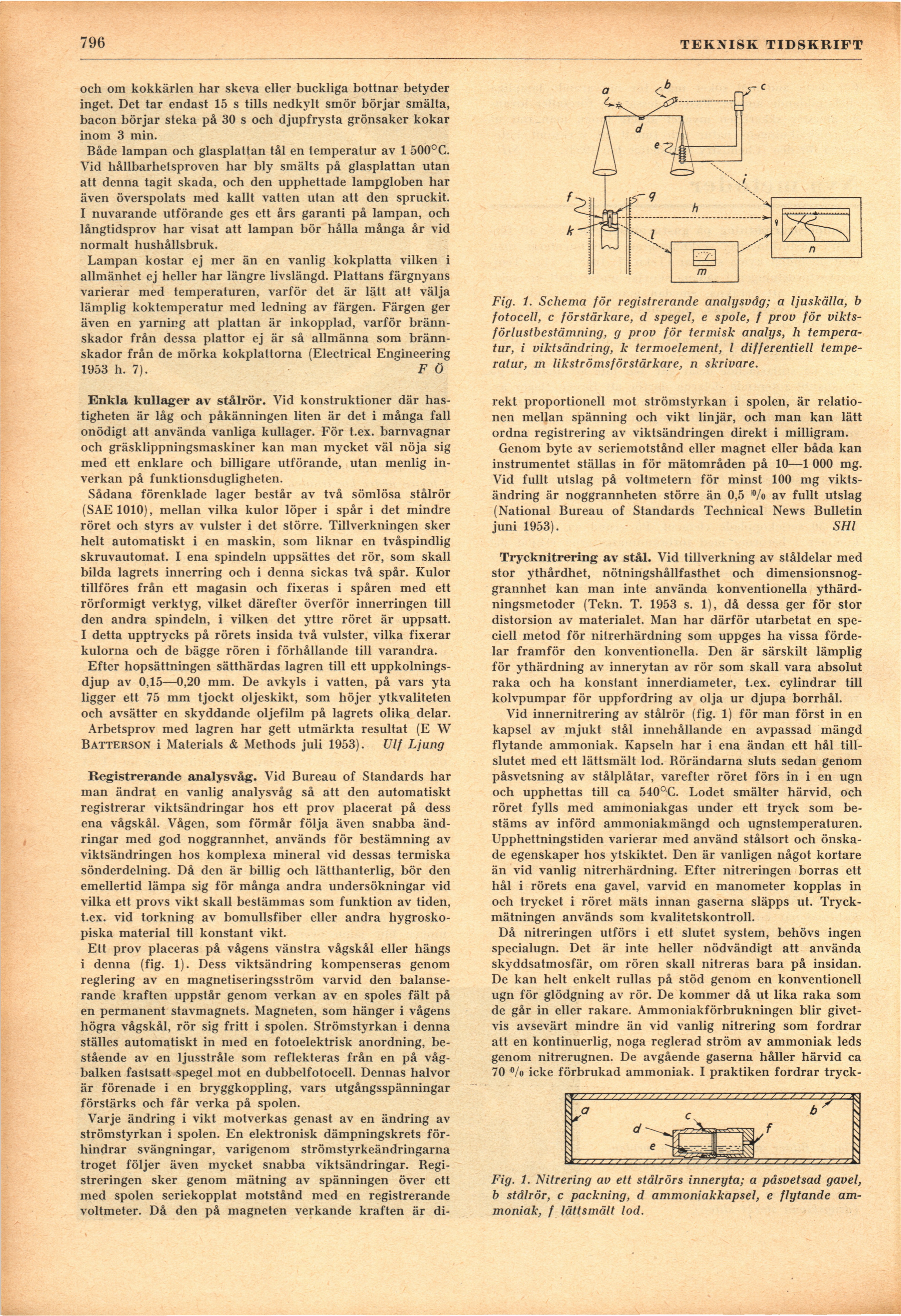 Full resolution (JPEG) - On this page / på denna sida - H. 38. 20 oktober 1953 - Nya metoder - Kokning med infrarödstrålare, av F Ö - Enkla kullager av stålrör, av Ulf Ljung - Registrerande analysvåg, av SHl - Trycknitrering av stål, av SHl
