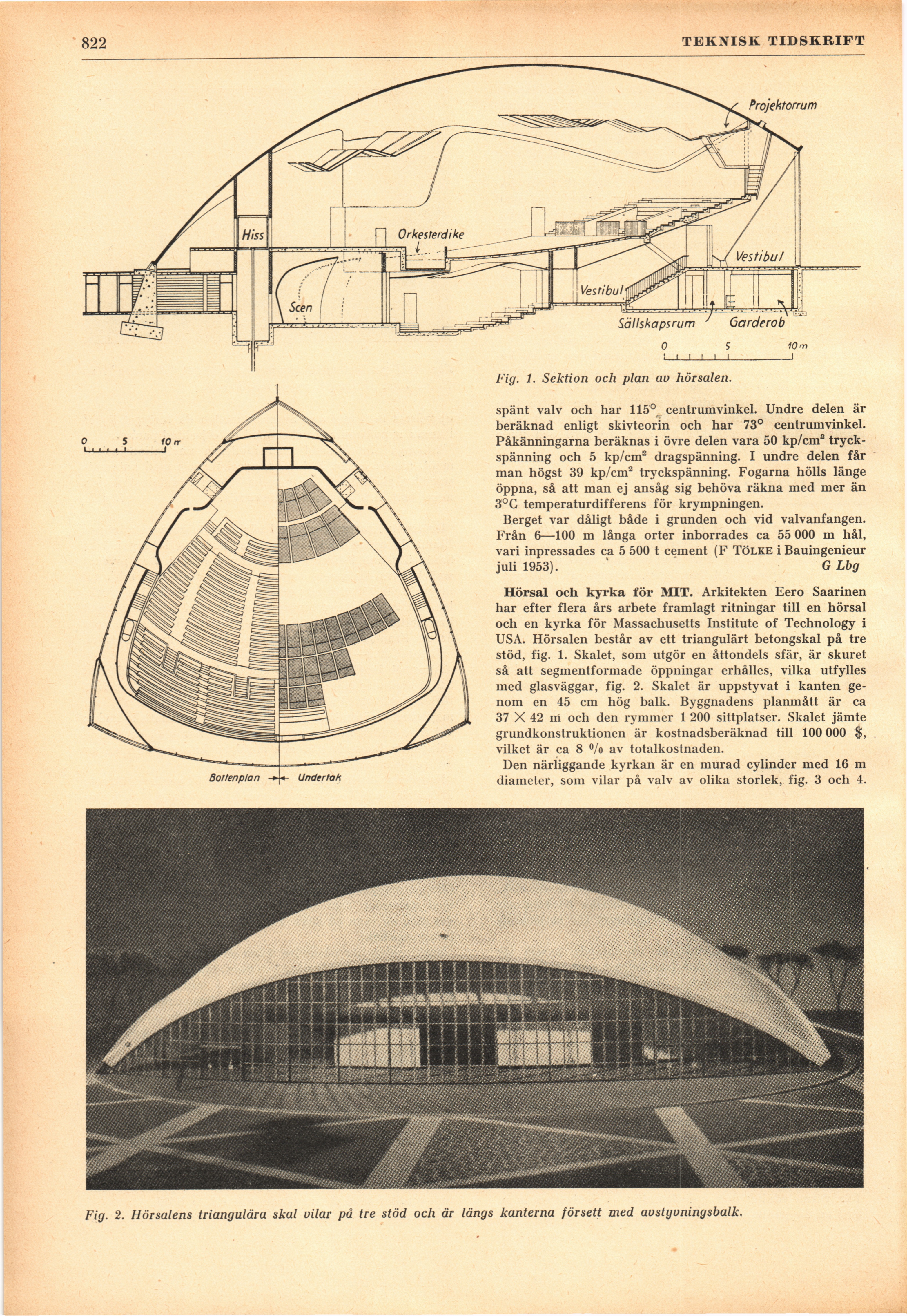 Hörsal och kyrka för MIT. Arkitekten Eero Saarinen