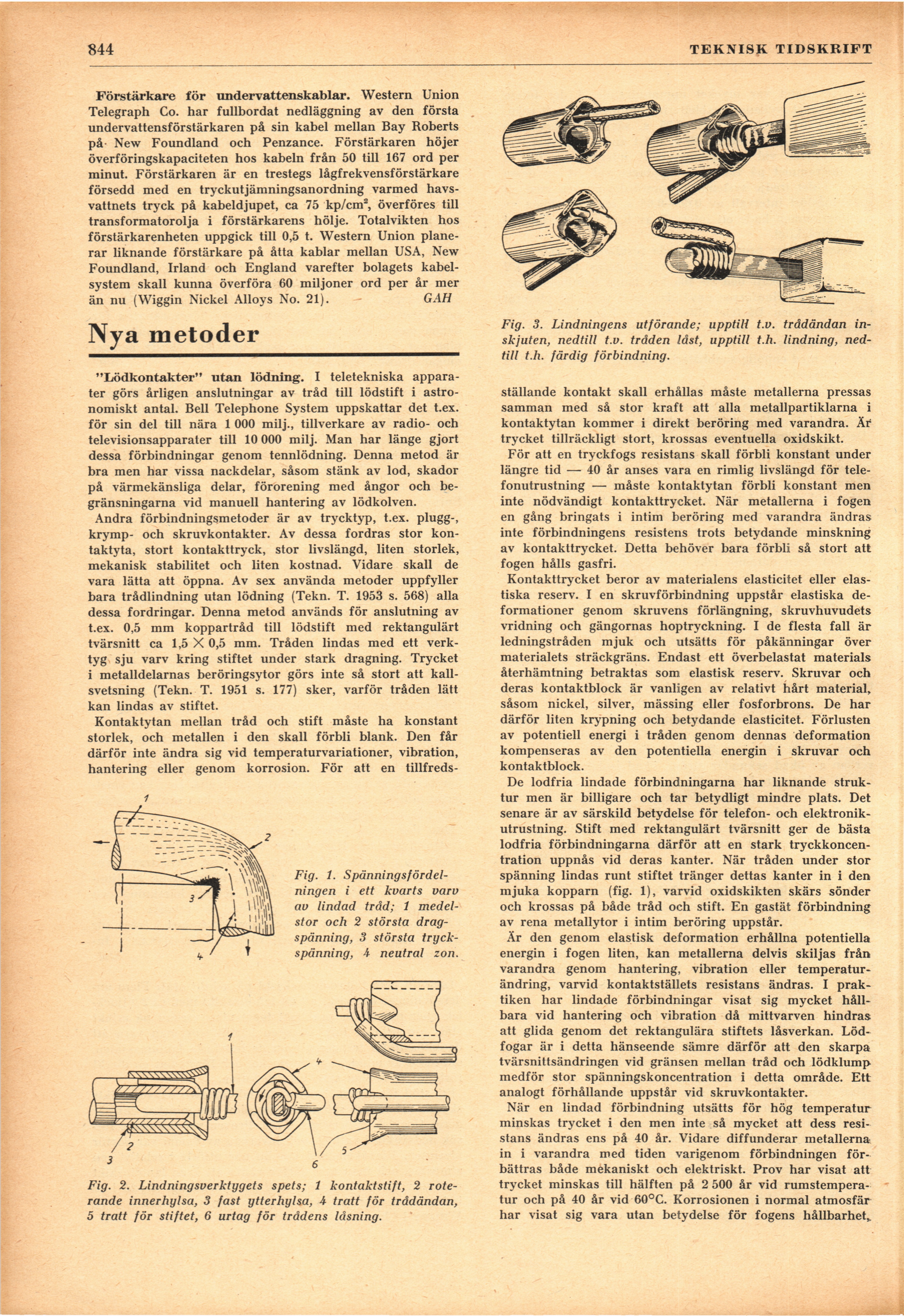 Full resolution (JPEG) - On this page / på denna sida - H. 40. 3 november 1953 - Andras erfarenheter - Förstärkare för undervattenskablar, av GAH - Nya metoder - »Lödkontakter» utan lödning, av SHl
