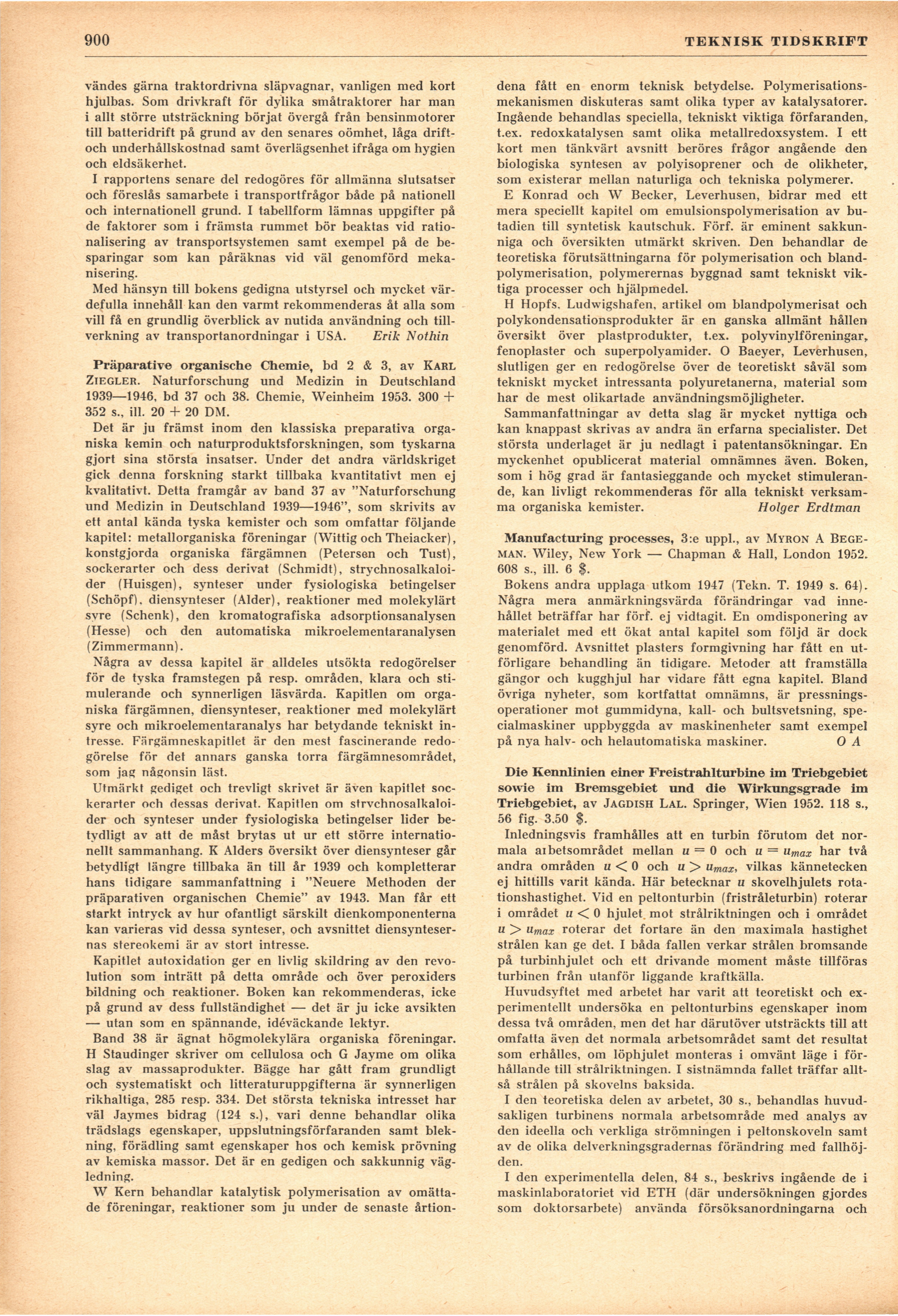 Full resolution (JPEG) - On this page / på denna sida - H. 42. 17 november 1953 - Böcker - Materials handling, equipment and methods in the USA, av Erik Nothin - Präparative organische Chemie, bd 2 & 3, av Holger Erdtman - Manufacturing processes, av O A - Die Kennlinien einer Freistrahlturbine im Triebgebiet sowie im Bremsgebiet und die Wirkungsgrade im Triebgebiet, av M Oledal