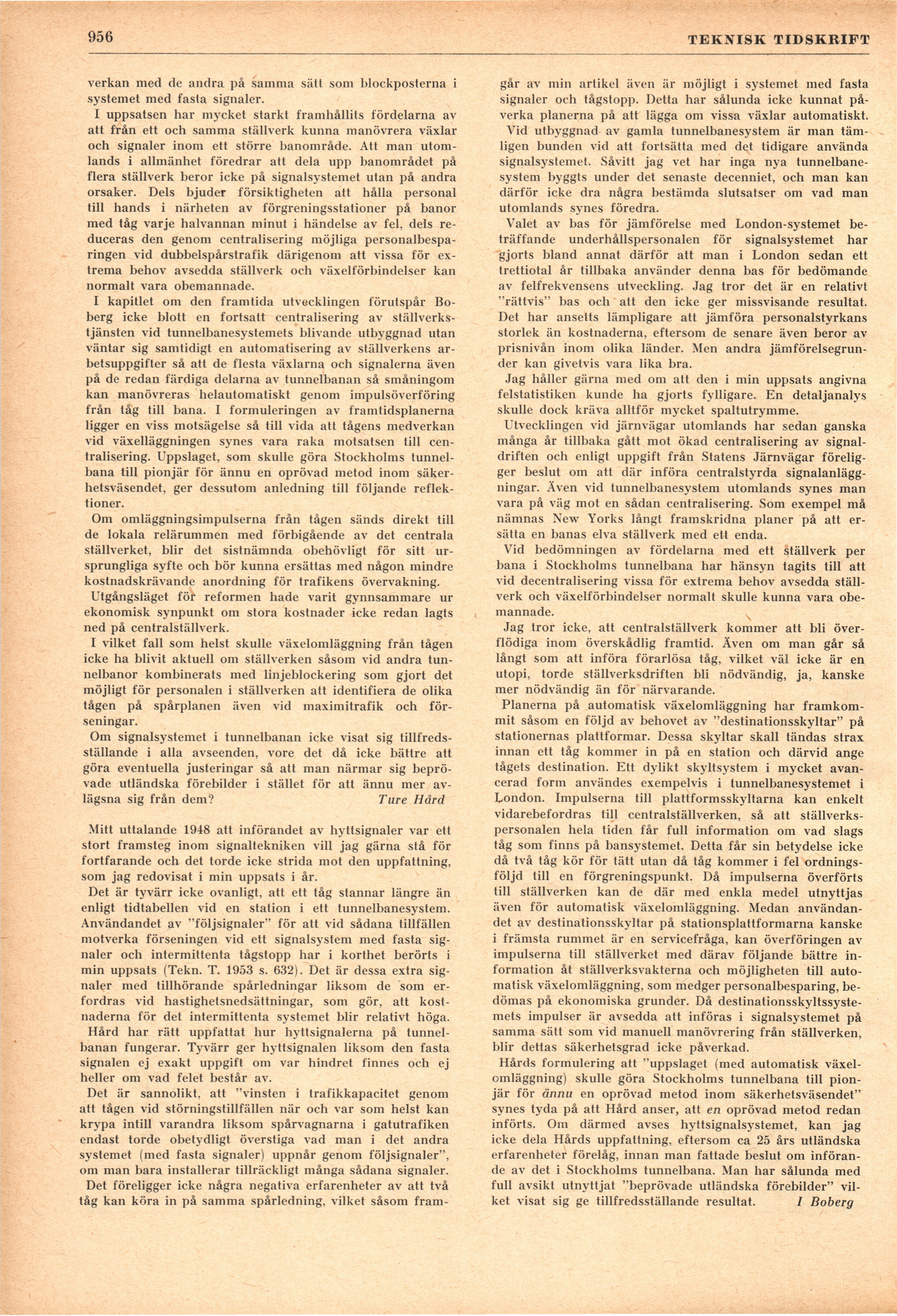 Full resolution (JPEG) - On this page / på denna sida - H. 44. 1 december 1953 - Debatt: Signalsystemet i Stockholms tunnelbana, av Ture Hård och I Boberg