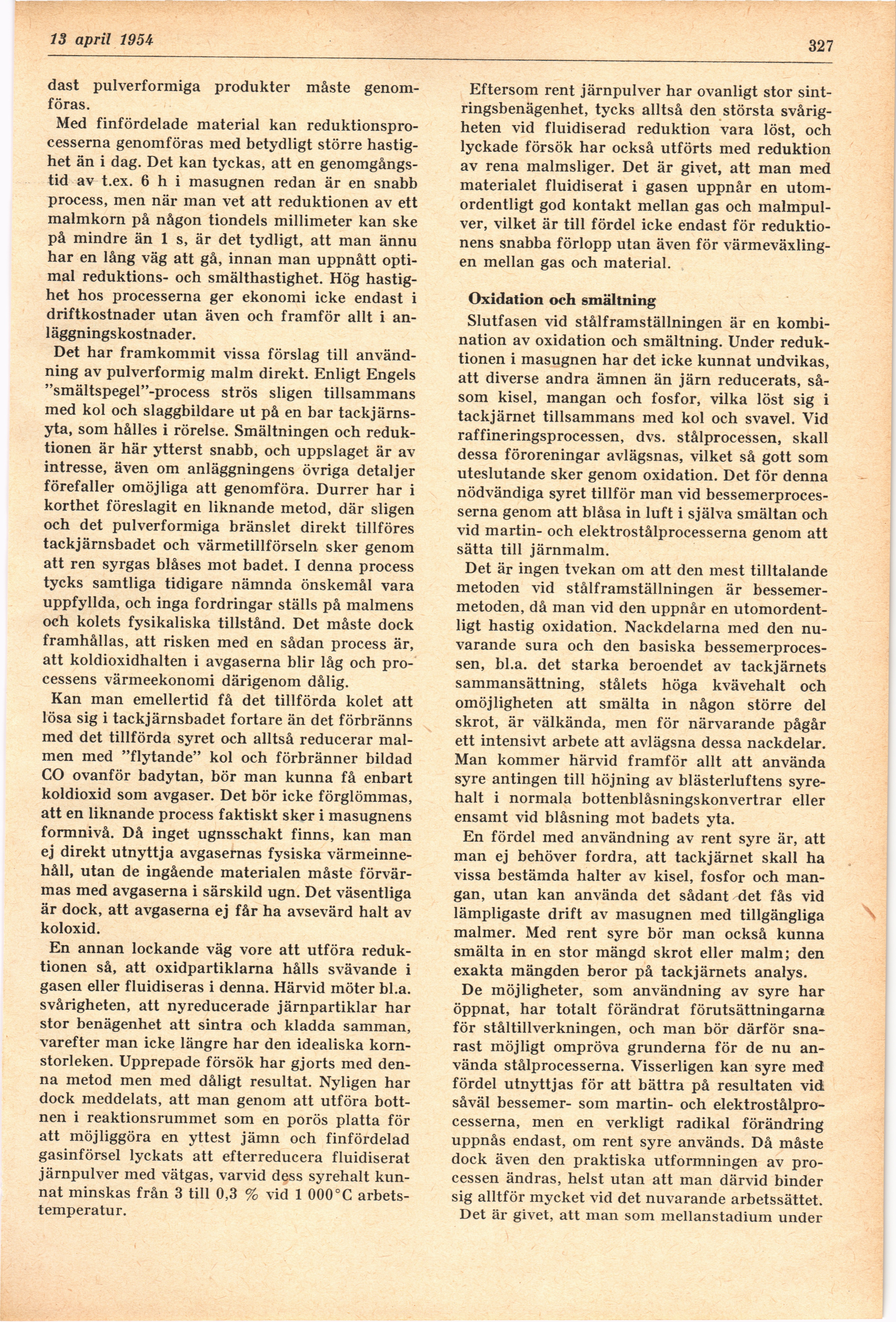 Full resolution (JPEG) - On this page / på denna sida - H. 15. 13 april 1954 - Tankar om metallurgiska processer, av Sven Eketorp