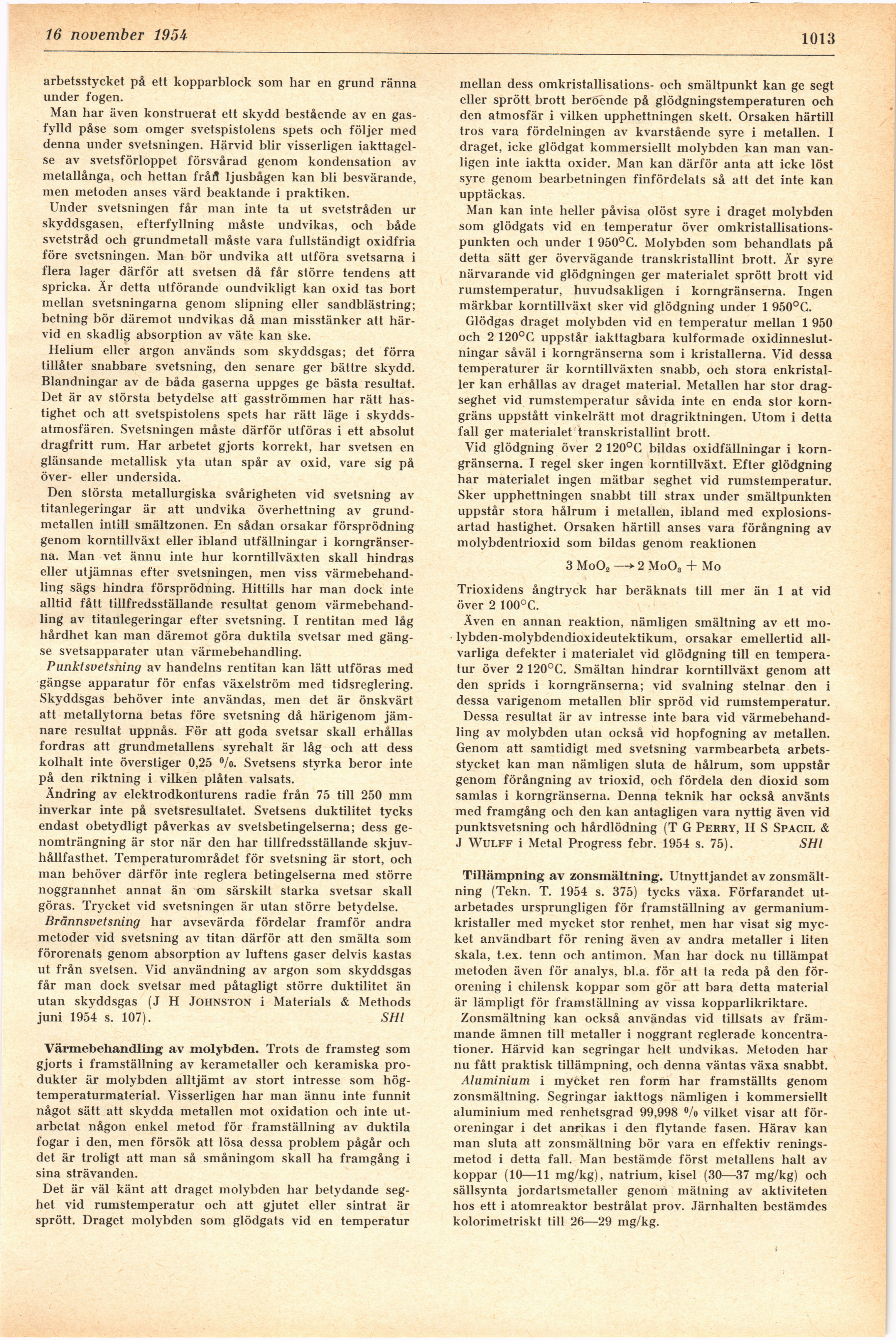 Full resolution (JPEG) - On this page / på denna sida - H. 42. 16 november 1954 - Andras erfarenheter - Svetsning av titan, av SHl - Värmebehandling av molybden, av SHl - Tillämpning av zonsmältning, av SHl