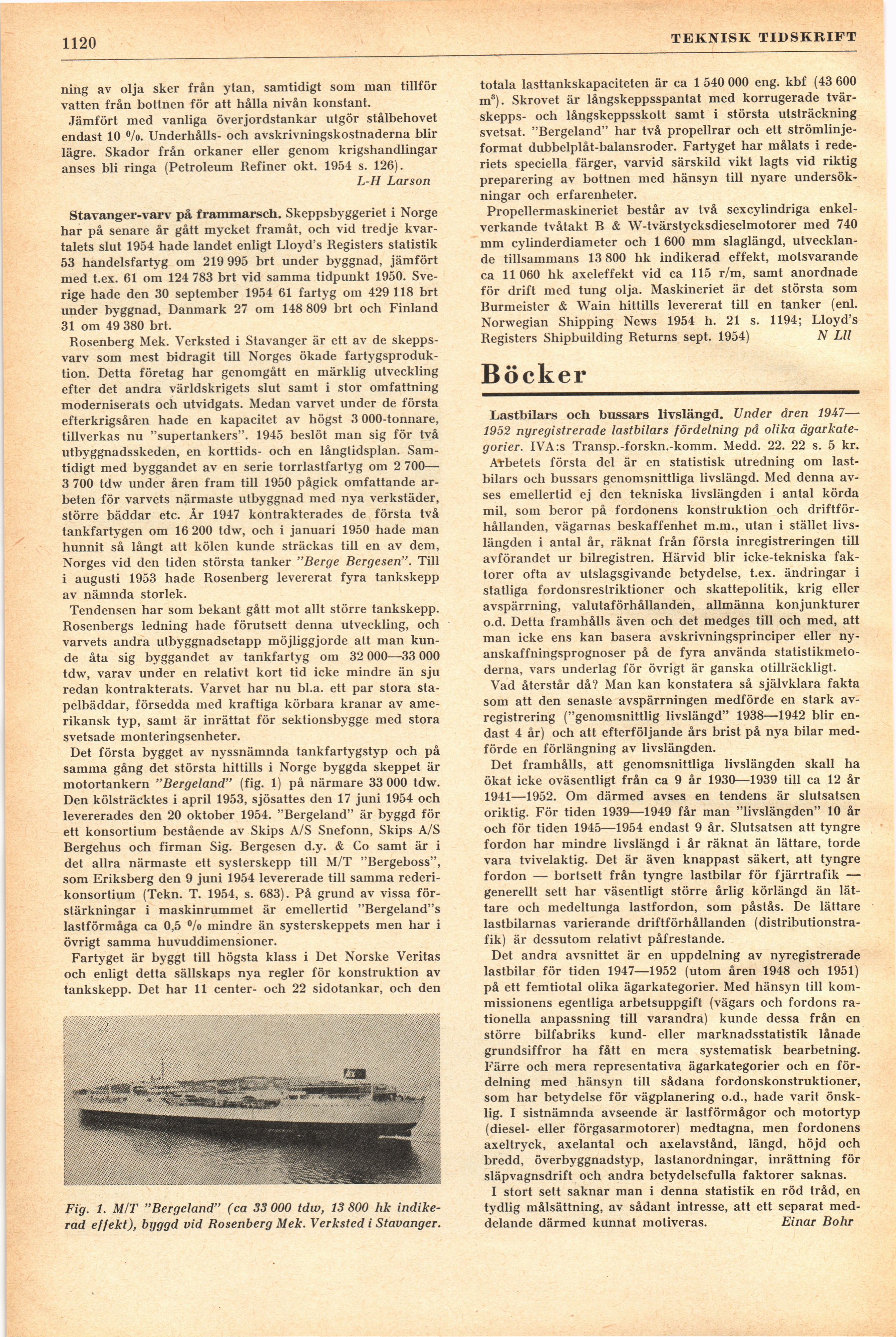 Full resolution (JPEG) - On this page / på denna sida - H. 47. 21 december 1954 - Nybyggen - Oljelagring i gammalt dagbrott, av L-H Larson - Stavanger-varv på frammarsch, av N Lll - Böcker - Lastbilars och bussars livslängd, av Einar Bohr