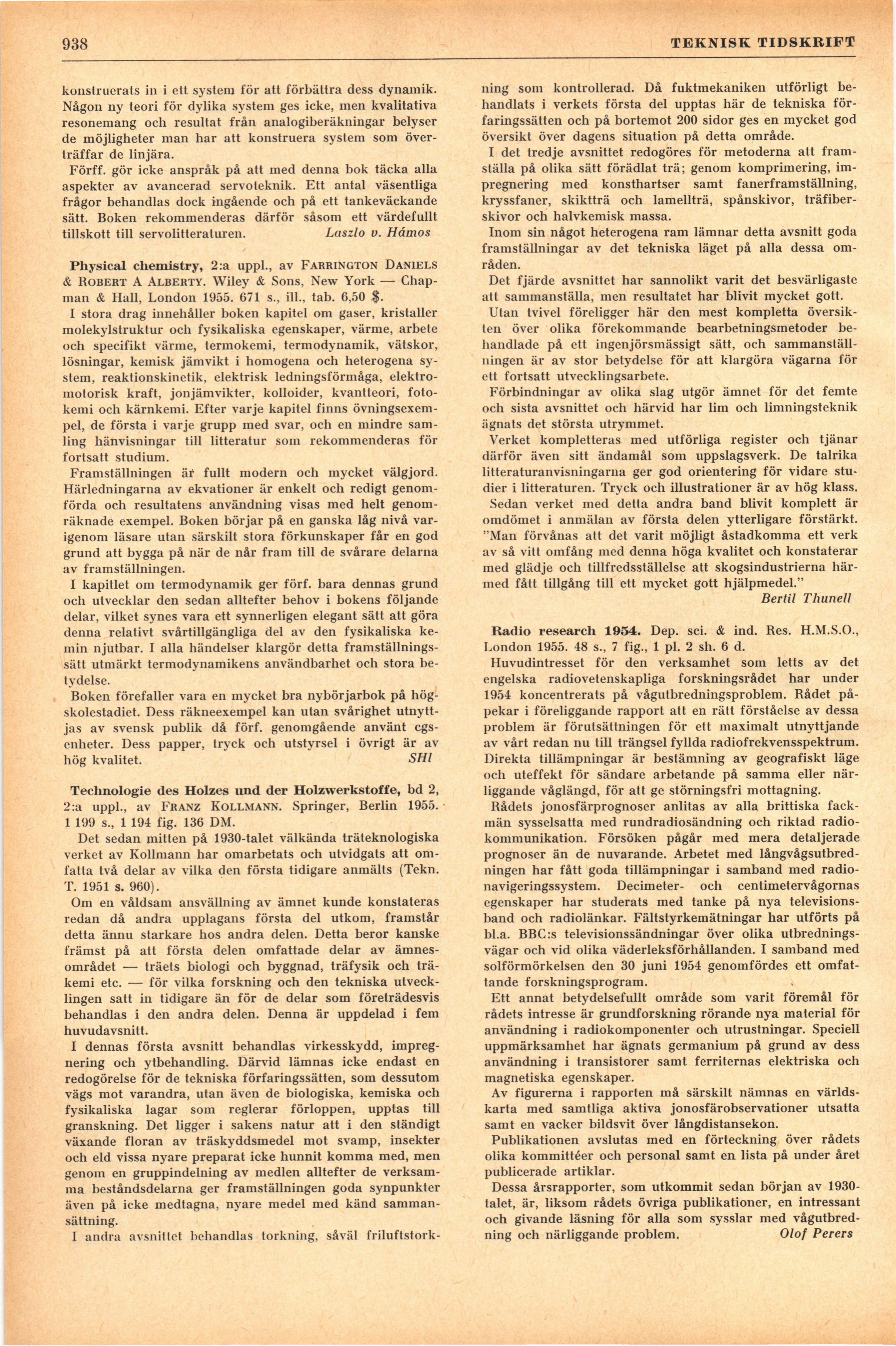 Full resolution (JPEG) - On this page / på denna sida - H. 41. 8 november 1955 - Böcker - Servomechanisms and regulating system design, bd 2, av Laszlo v. Hámos - Physical chemistry, av SHl - Technologie des Holzes und der Holzwerkstoffe, bd 2, av Bertil Thunell - Radio research 1954, av Olof Perers