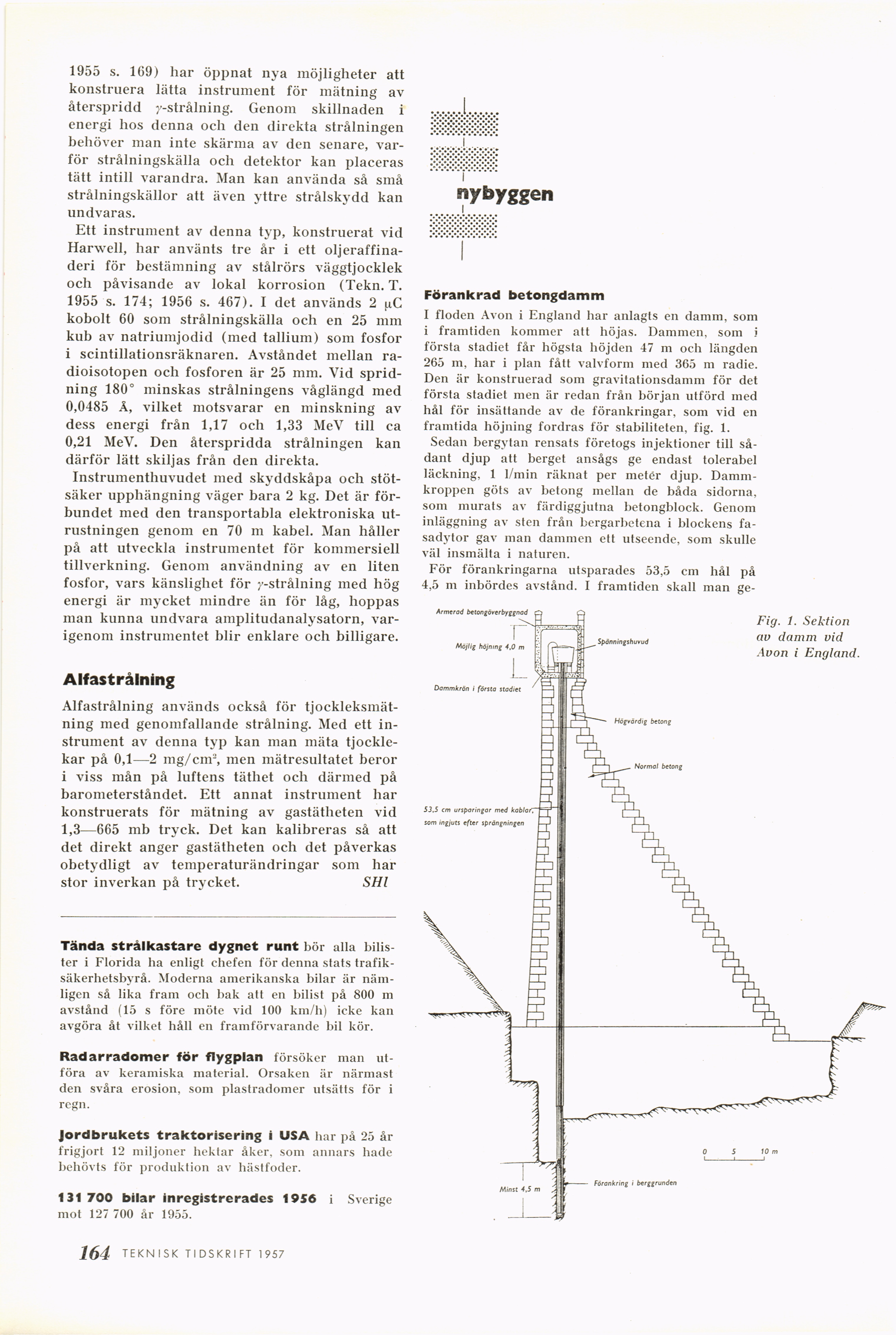Full resolution (JPEG) - On this page / på denna sida - 1957, H. 8 - Tjockleksmätning med radioaktiv strålning, av SHl - Tända strålkastare dygnet runt - Radarradomer för flygplan - Jordbrukets traktorisering i USA - 131 700 bilar inregistrerades 1956 - Nybyggen - Förankrad betongdamm, av G Lbg