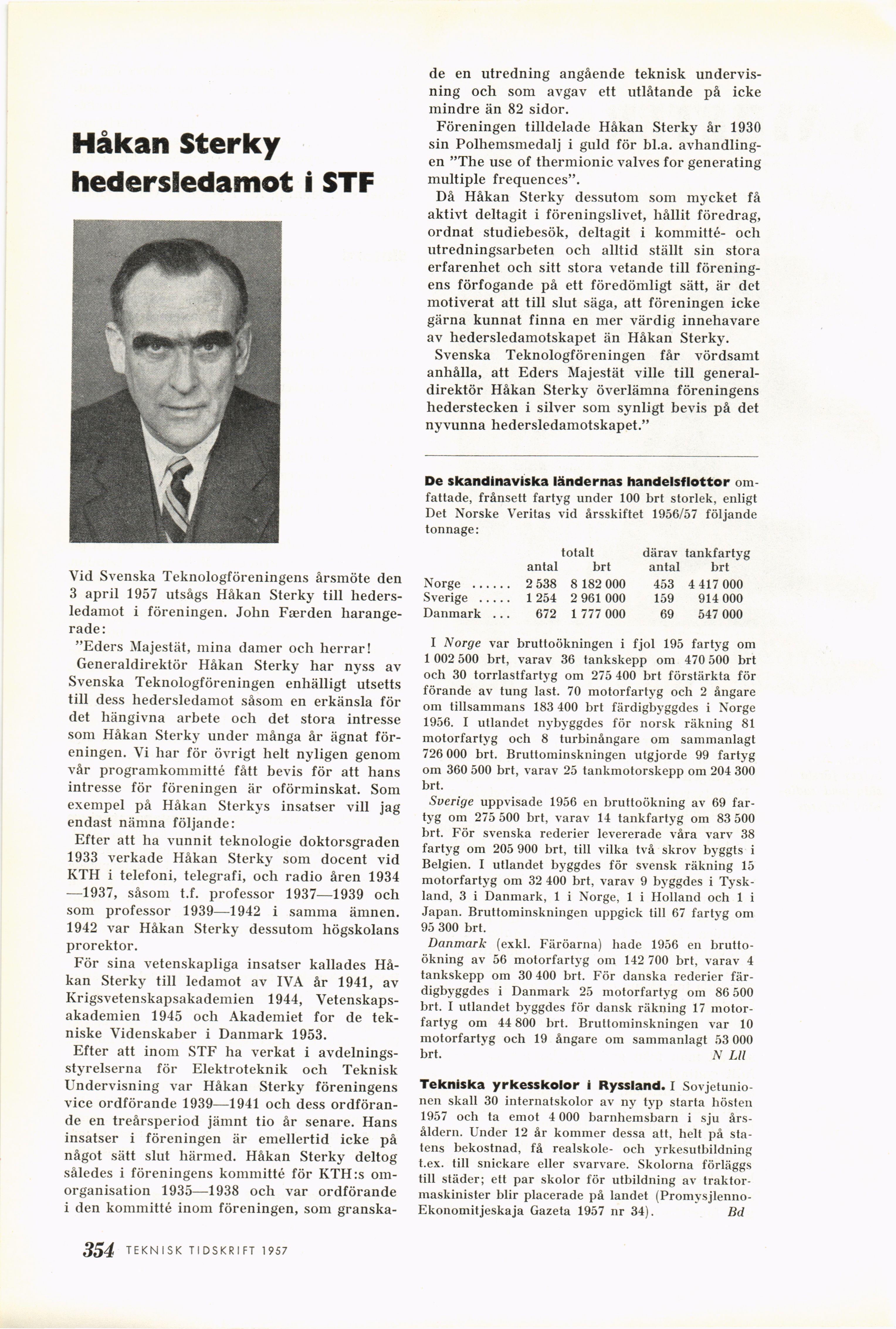 Full resolution (JPEG) - On this page / på denna sida - 1957, H. 16 - Håkan Sterky hedersledamot i STF - De skandinaviska ländernas handelsflottor, av N Lll - Tekniska yrkesskolor i Ryssland, av Bd - Ingenjörsbehovet i Sverige, av Hans Tysklind