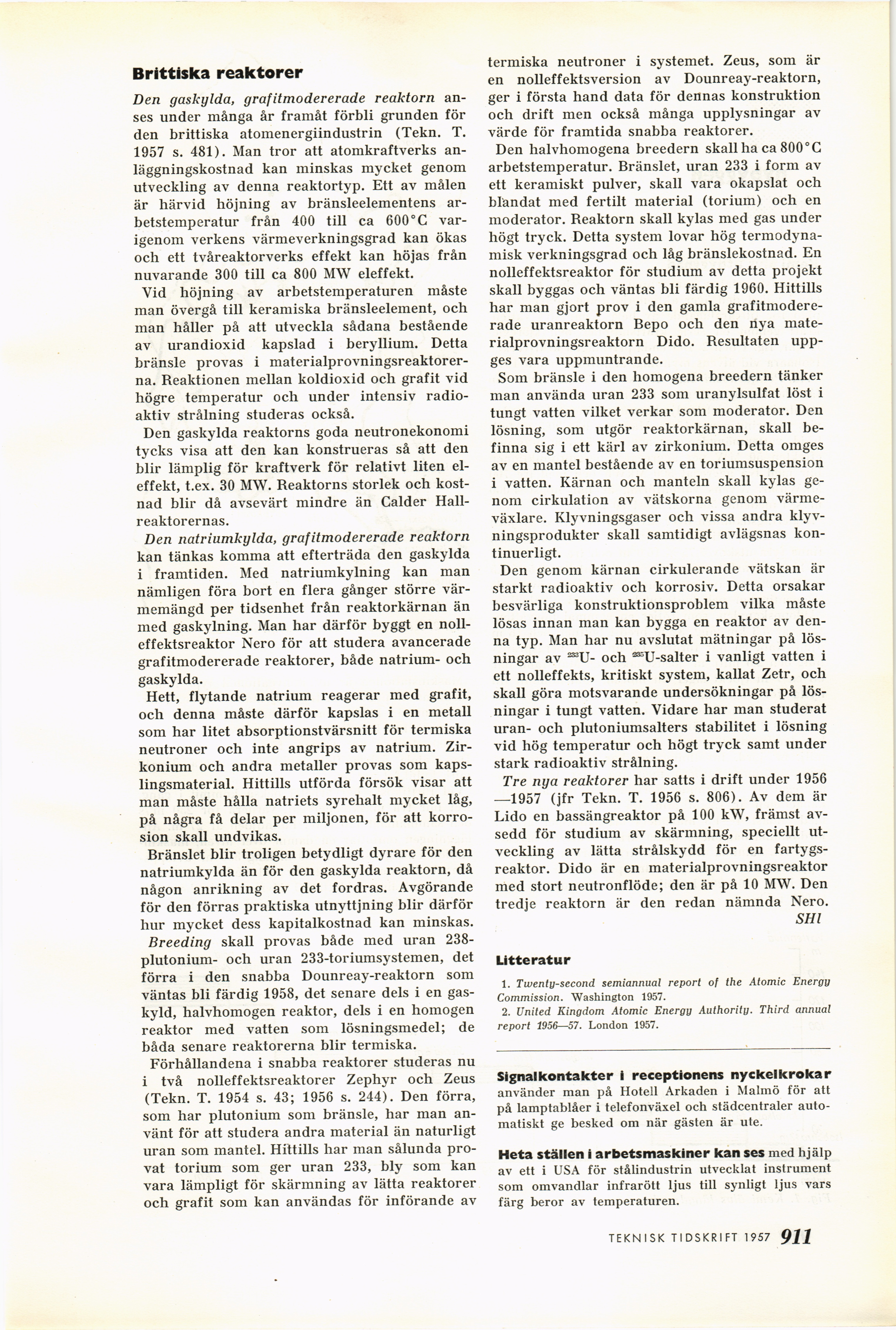 Full resolution (JPEG) - On this page / på denna sida - 1957, H. 38 - Atomenergin i de anglosaxiska länderna, av SHl - Signalkontakter i receptionens nyckelkrokar - Heta ställen i arbetsmaskiner kan ses