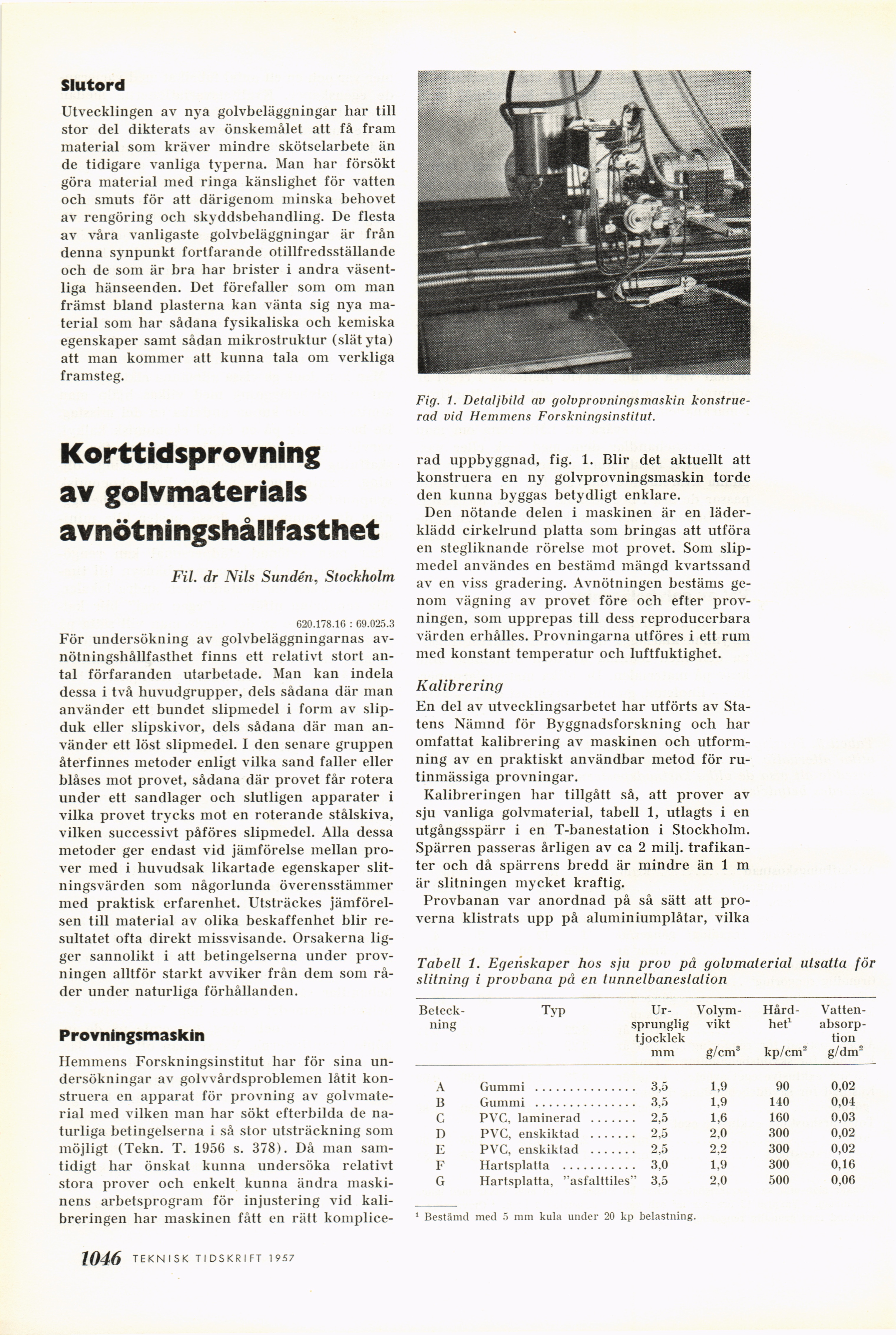 Full resolution (JPEG) - On this page / på denna sida - 1957, H. 43 - Golvbeläggningar, av Christer Bring och Nils Sundén - Korttidsprovning av golvmaterials avnötningshållfasthet, av Nils Sundén