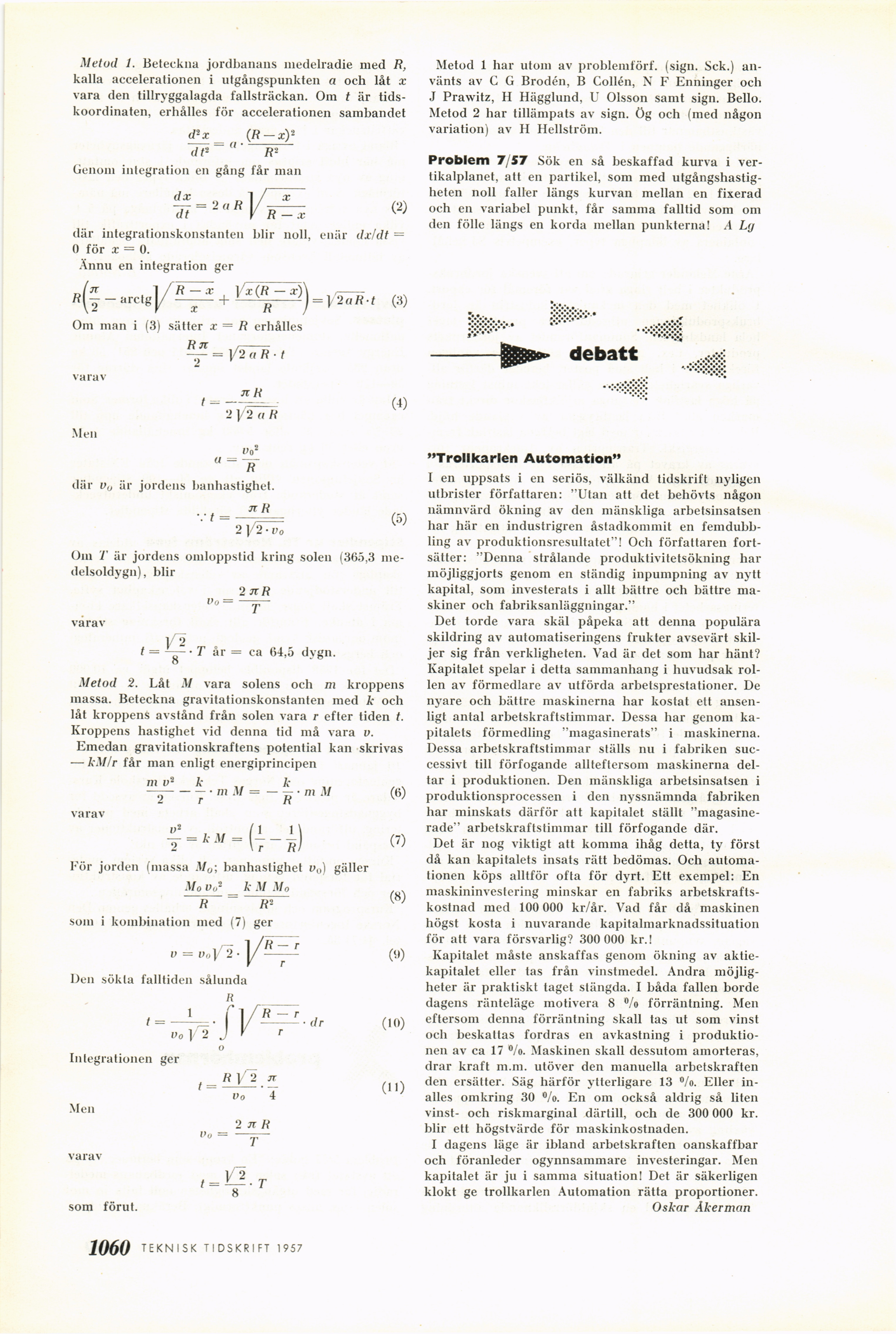 Full resolution (JPEG) - On this page / på denna sida - 1957, H. 43 - Problemhörnan, av A Lg - Debatt: »Trollkarlen Automation», av Oskar Åkerman