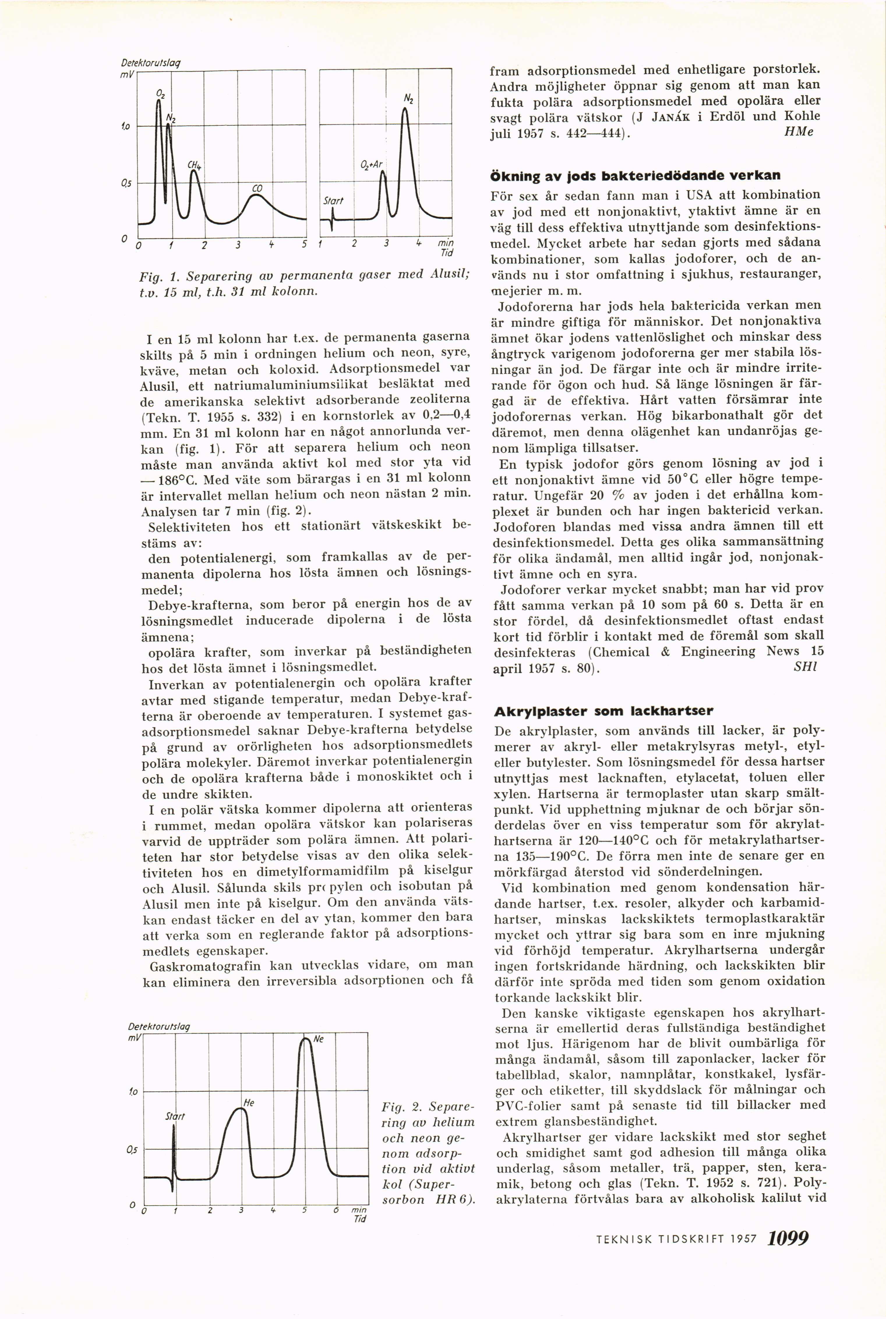 Full resolution (JPEG) - On this page / på denna sida - 1957, H. 45 - Andras erfarenheter - Gaskromatografi, av HMe - Ökning av jods bakteriedödande verkan, av SHl - Akrylplaster som lackhartser, av SHl
