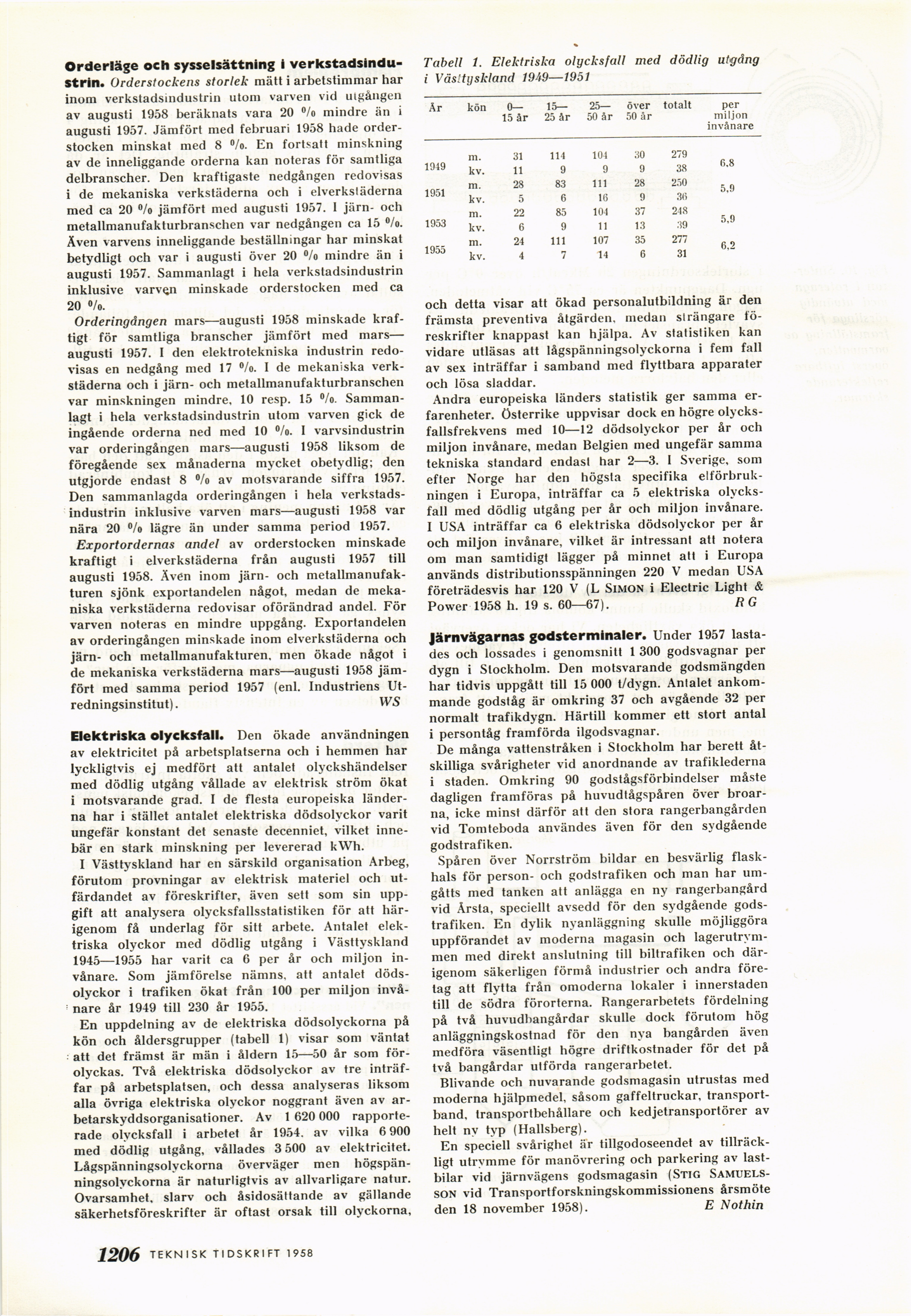 Full resolution (JPEG) - On this page / på denna sida - 1958, H. 45 - Orderläge och sysselsättning i verkstadsindustrin, av WS - Elektriska olycksfall, av R G - Järnvägarnas godsterminaler, av E Nothin