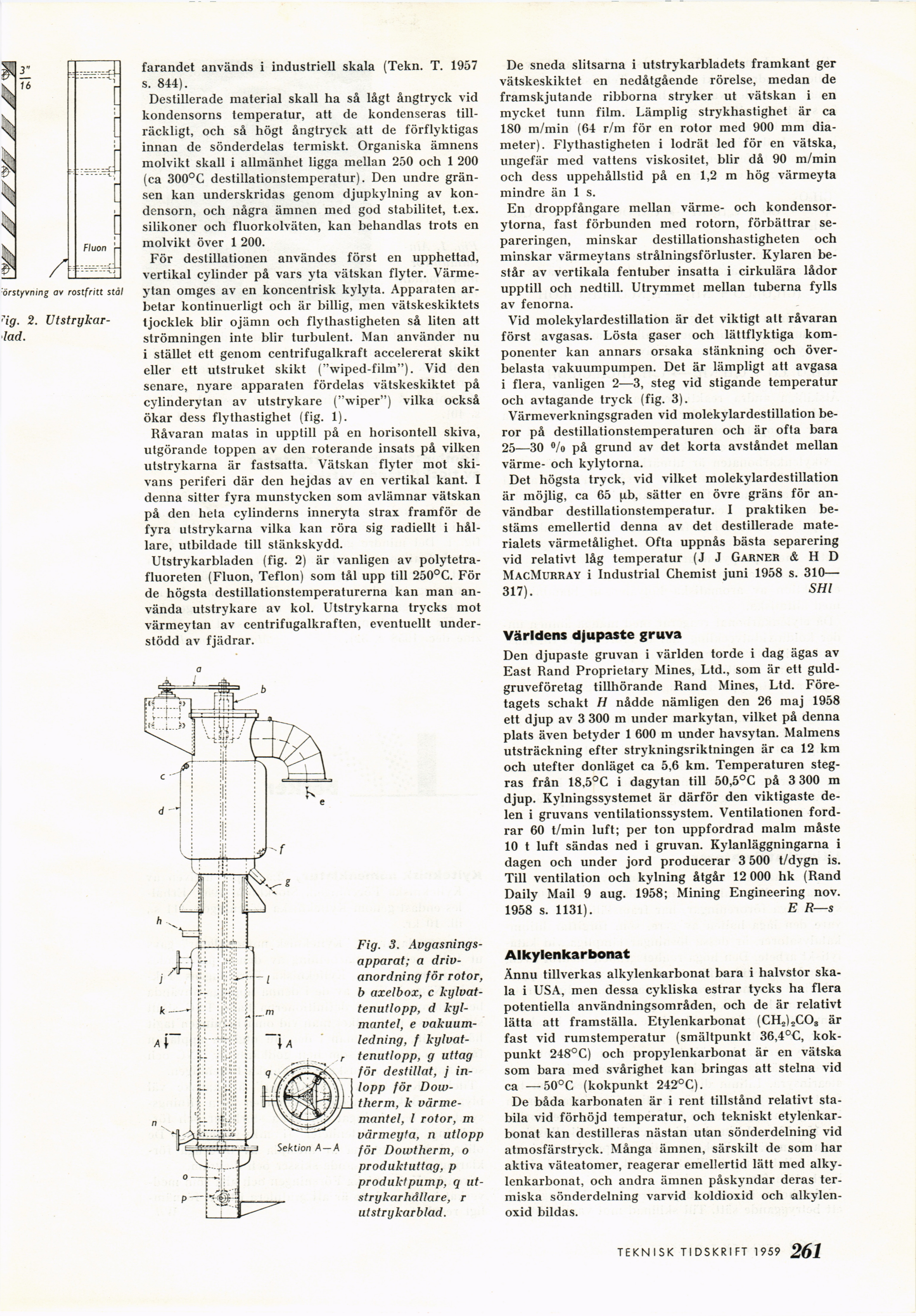 Full resolution (JPEG) - On this page / på denna sida - 1959, H. 11 - Andras erfarenheter - Apparatur för industriell molekylardestillation, av SHl - Världens djupaste gruva, av E R—s - Alkylenkarbonat, av SHl