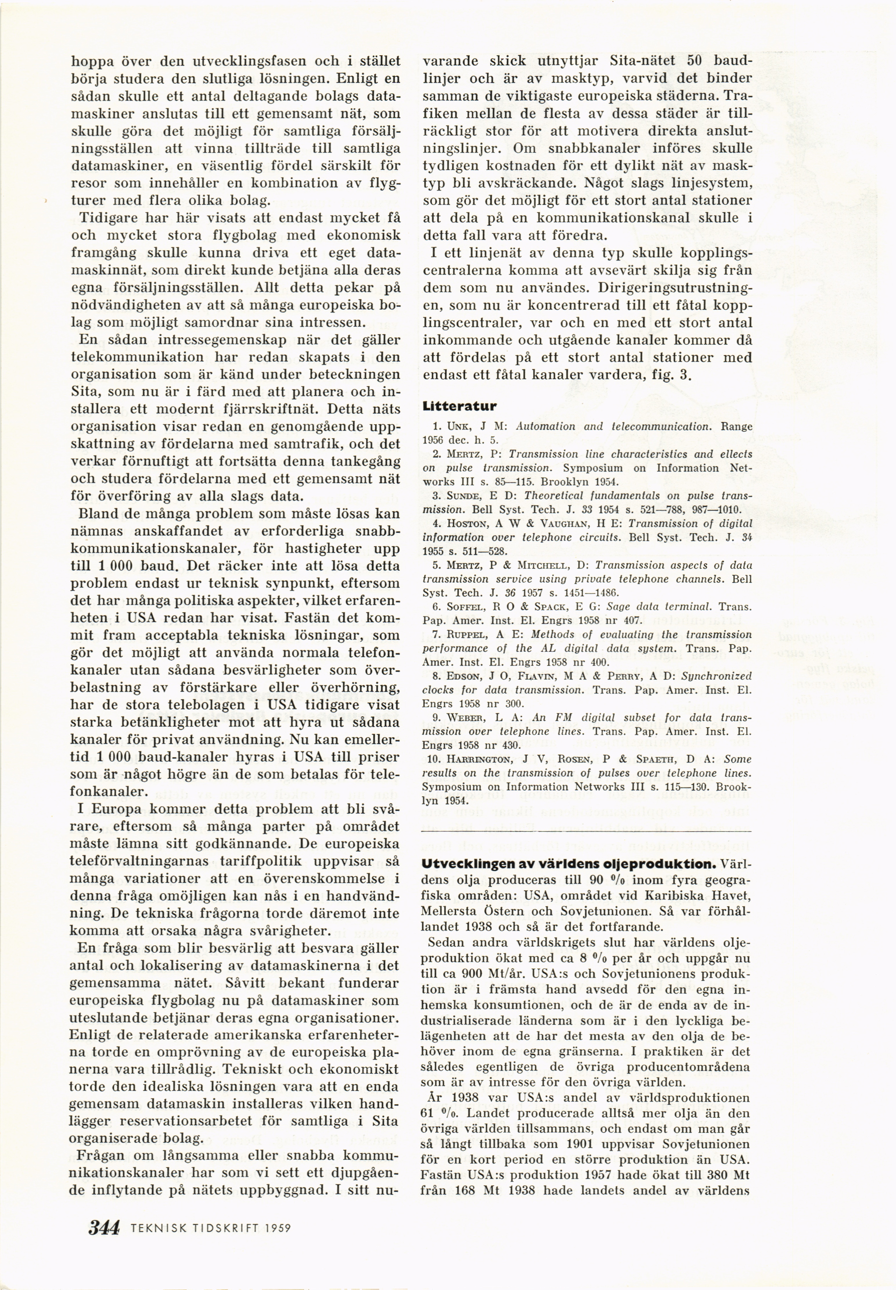 Full resolution (JPEG) - On this page / på denna sida - 1959, H. 14 - Kommunikationsnät för dataöverföring, av J M Unk - Utvecklingen av världens oljeproduktion, av WS
