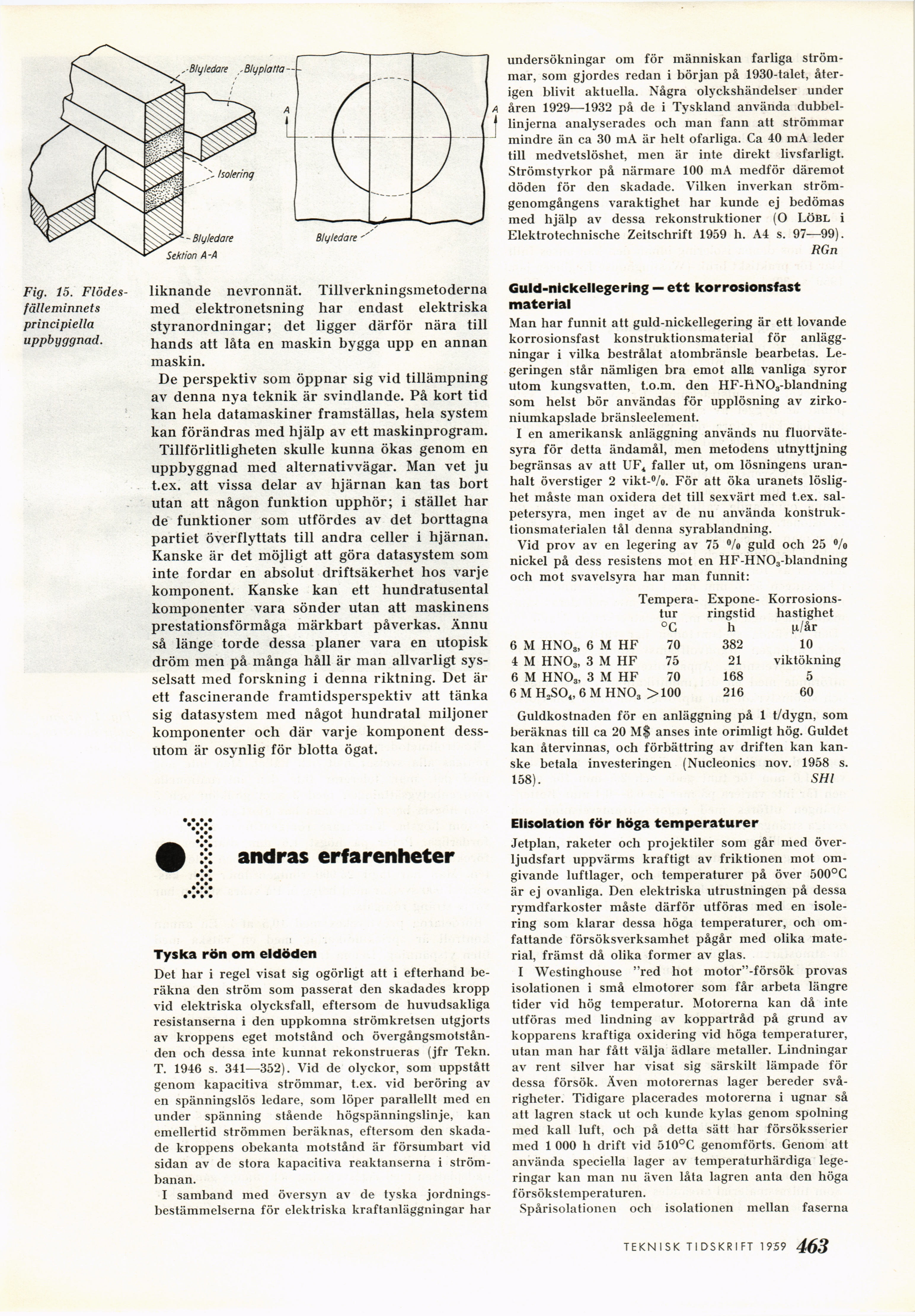 Full resolution (JPEG) - On this page / på denna sida - 1959, H. 18 - Minneselement i framtida datamaskiner, av Lars Arosenius - Andras erfarenheter - Tyska rön om eldöden, av RGn - Guld-nickellegering — ett korrosionsfast material, av SHl - Elisolation för höga temperaturer, av RGn