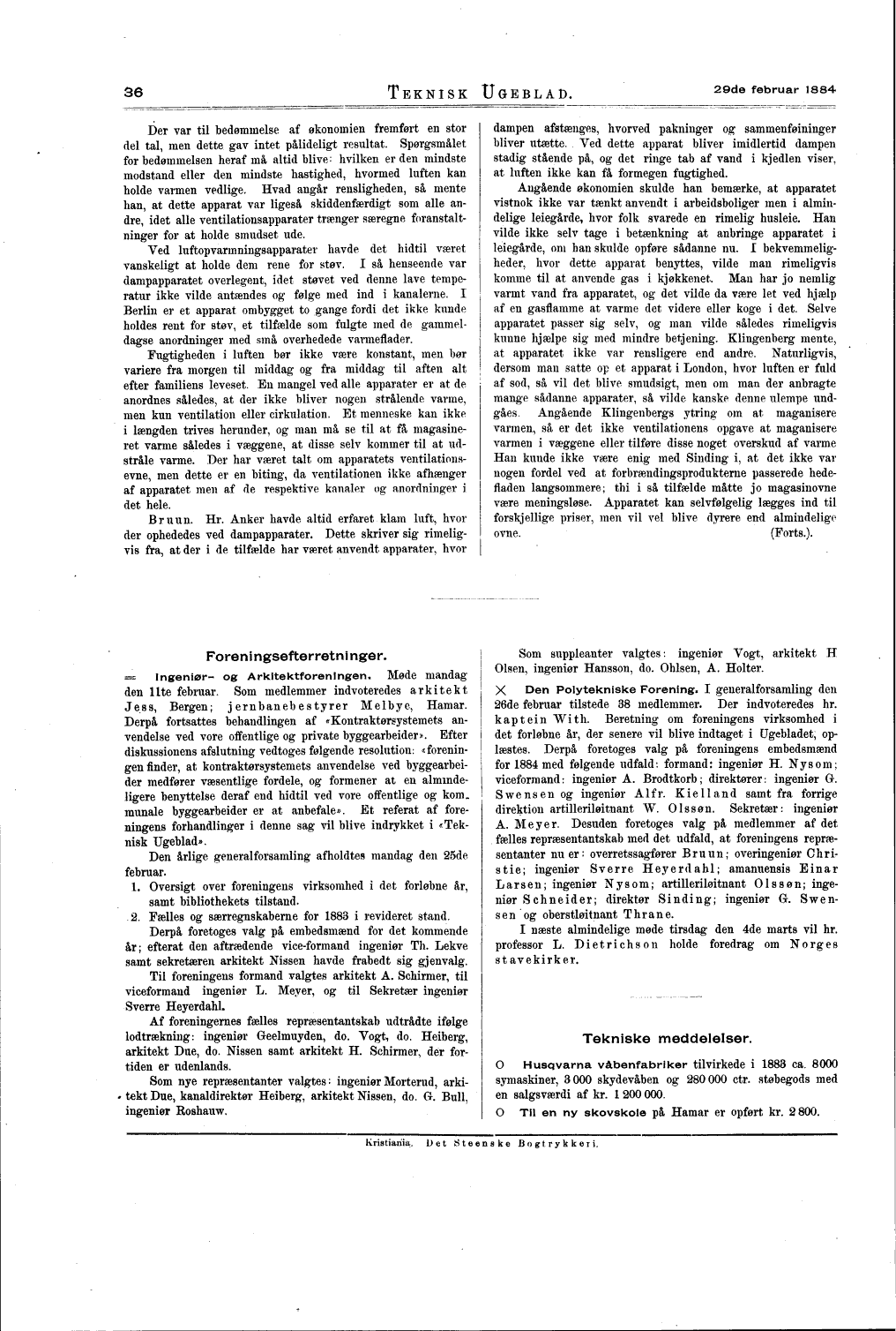 for 1884 med følgende udfald: formand: ingeniør H. Nysom;