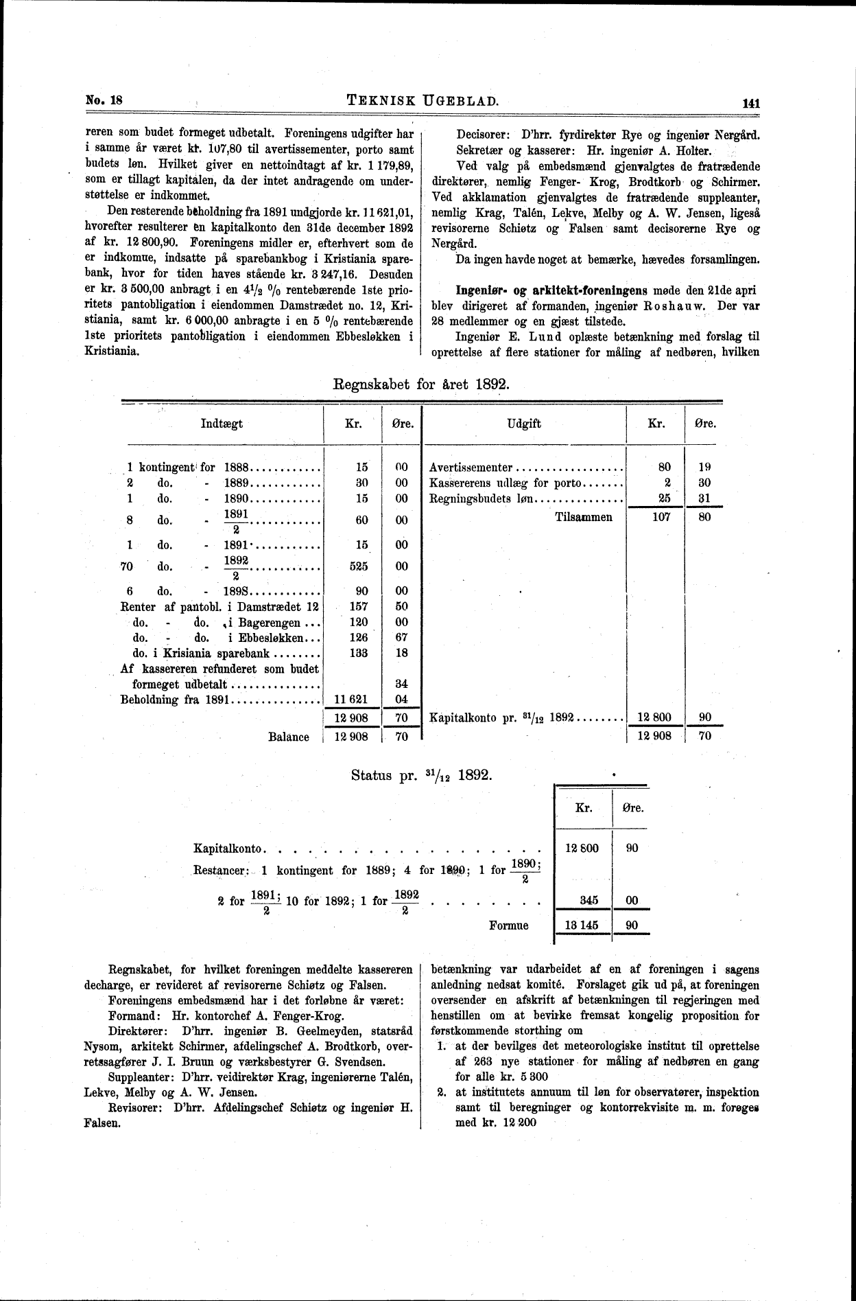 Full resolution (TIFF) - On this page / på denna sida - No. 18. 4 mai 1893 - Foreningsefterretninger - Ingeniør- og arkitekt-foreningen