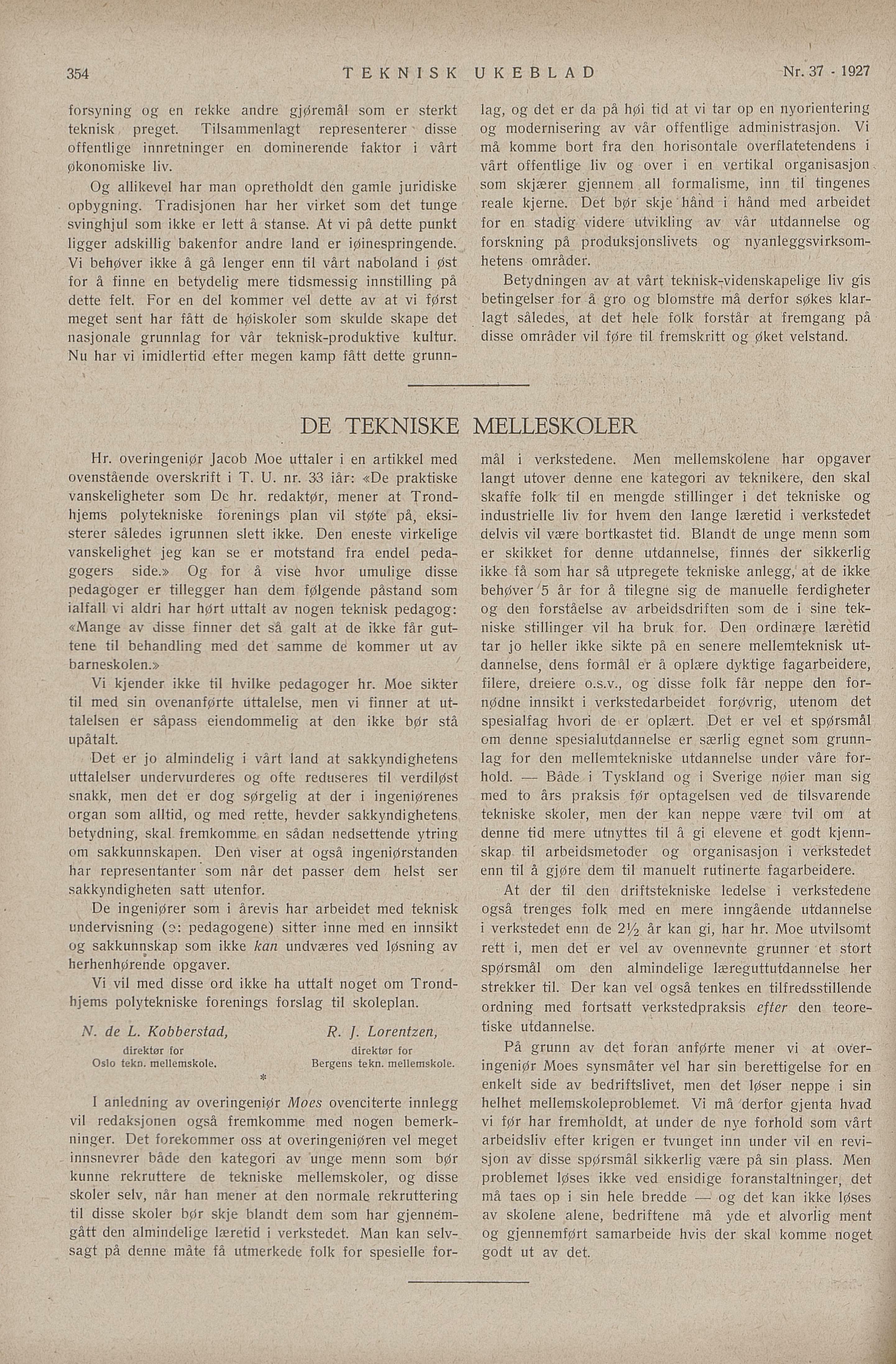 354 TEKNISK UKEBLAD Nr. 37 - 1927