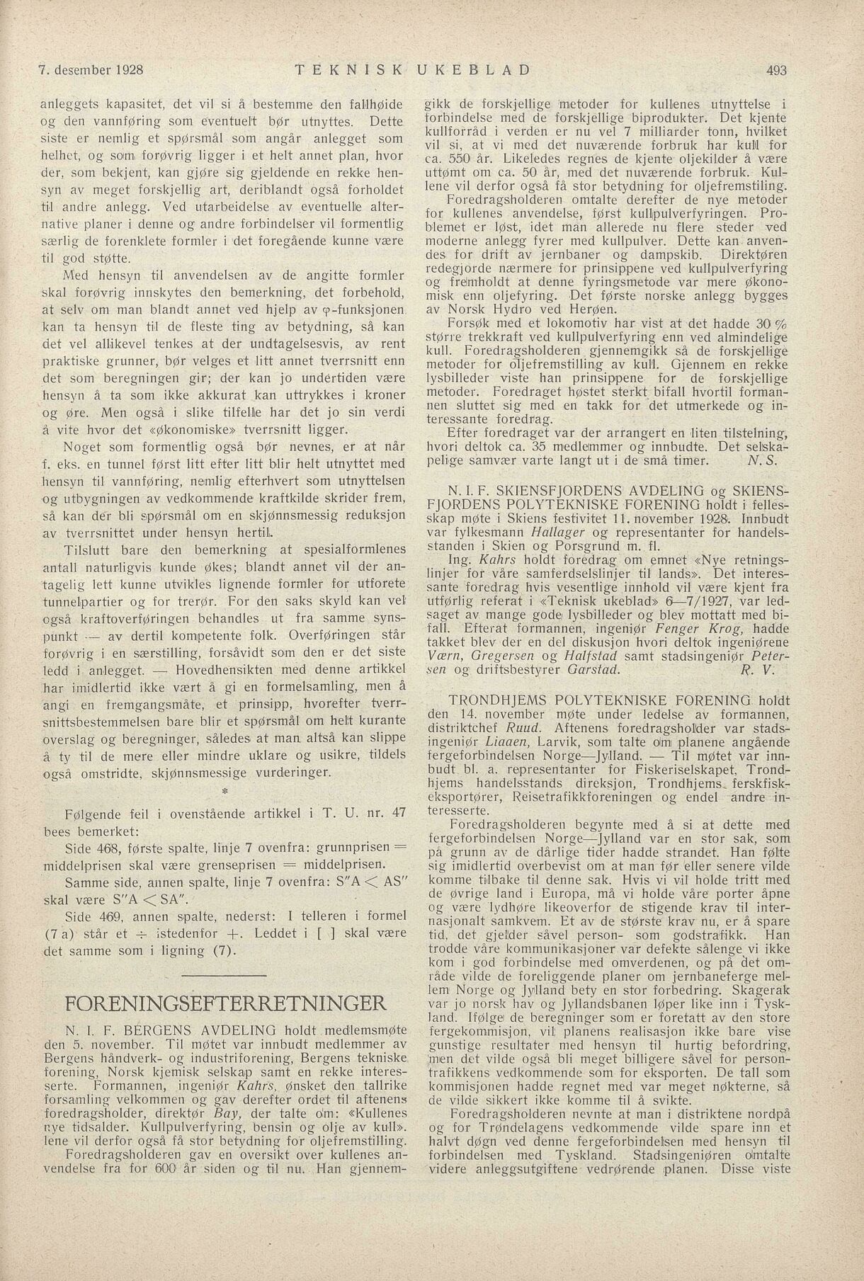 7. desember 1928 TEKNISK UKEBLAD 493