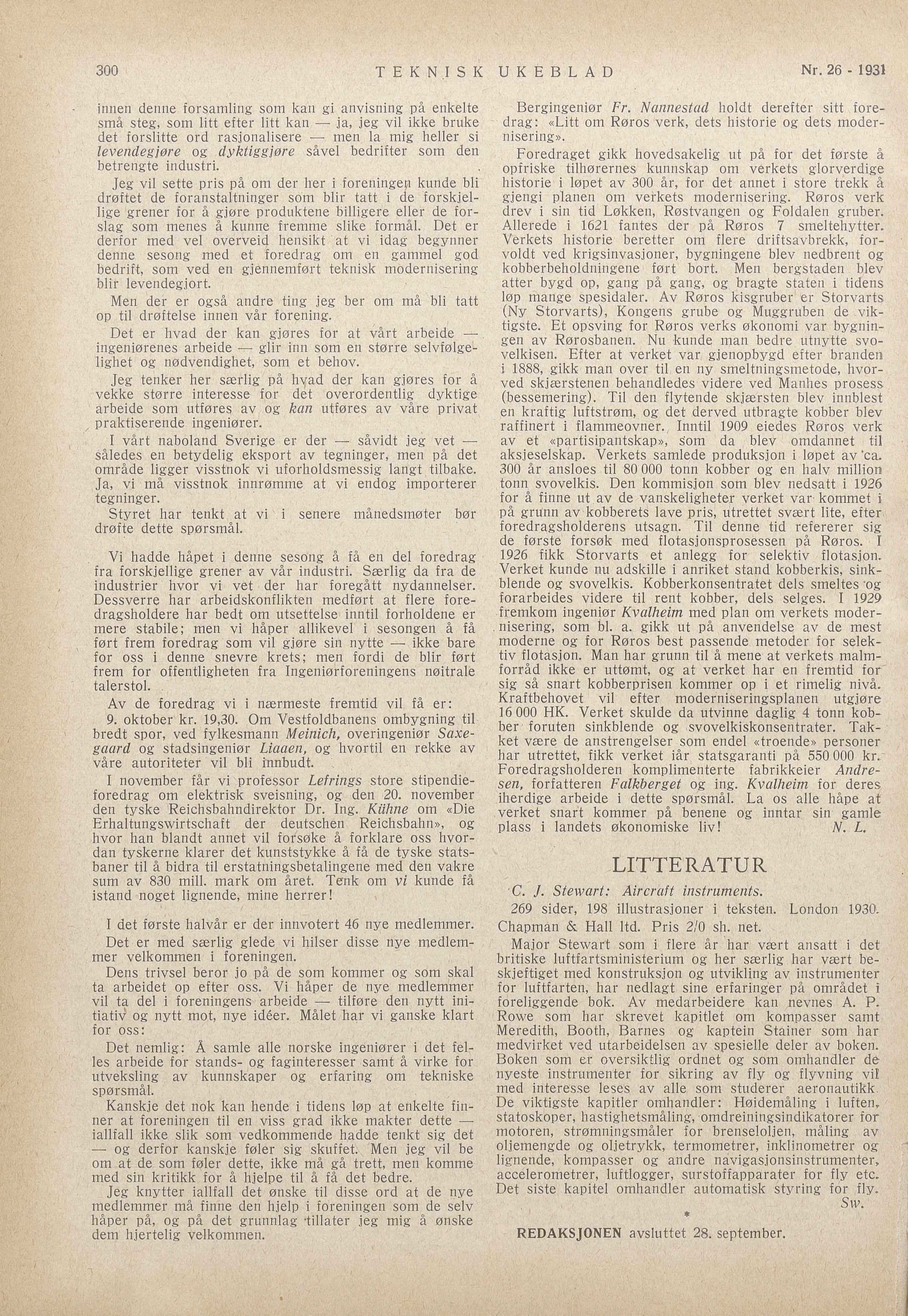 Full resolution (JPEG) - On this page / på denna sida - Nr. 26. 30. september 1931 - N. I. F. Oslo avdeling, av N. L. - Litteratur - Anmeldelse: C. J. Stewart: Aircraft instruments, av Sw.