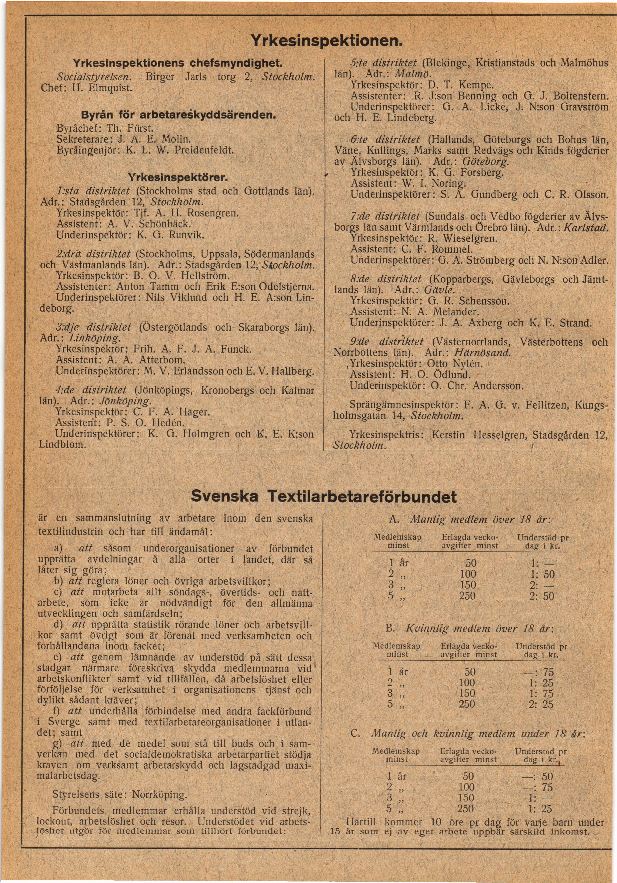 Yrkesinspektör: Tjf. A. H. Rosengren.