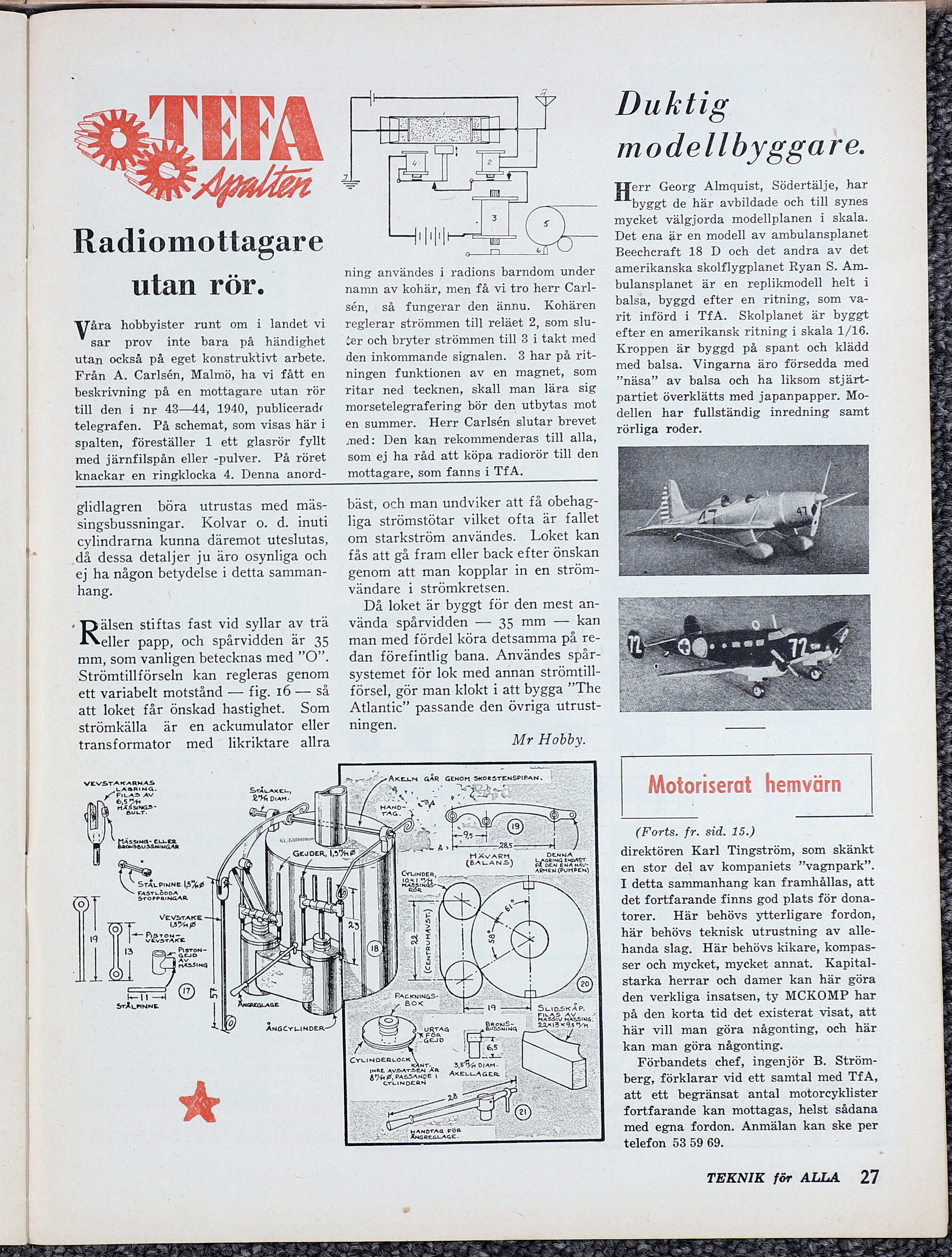 Full resolution (JPEG) - On this page / på denna sida - Motoriserat hemvärn, av Y. Norrvi - ”The Atlantic — bergklättraren”. Ett trevligt lokmodellbygge för händiga hobbyister, av Mr Hobby - TefA-spalten: Radiomottagare utan rör - Duktig modellbyggare