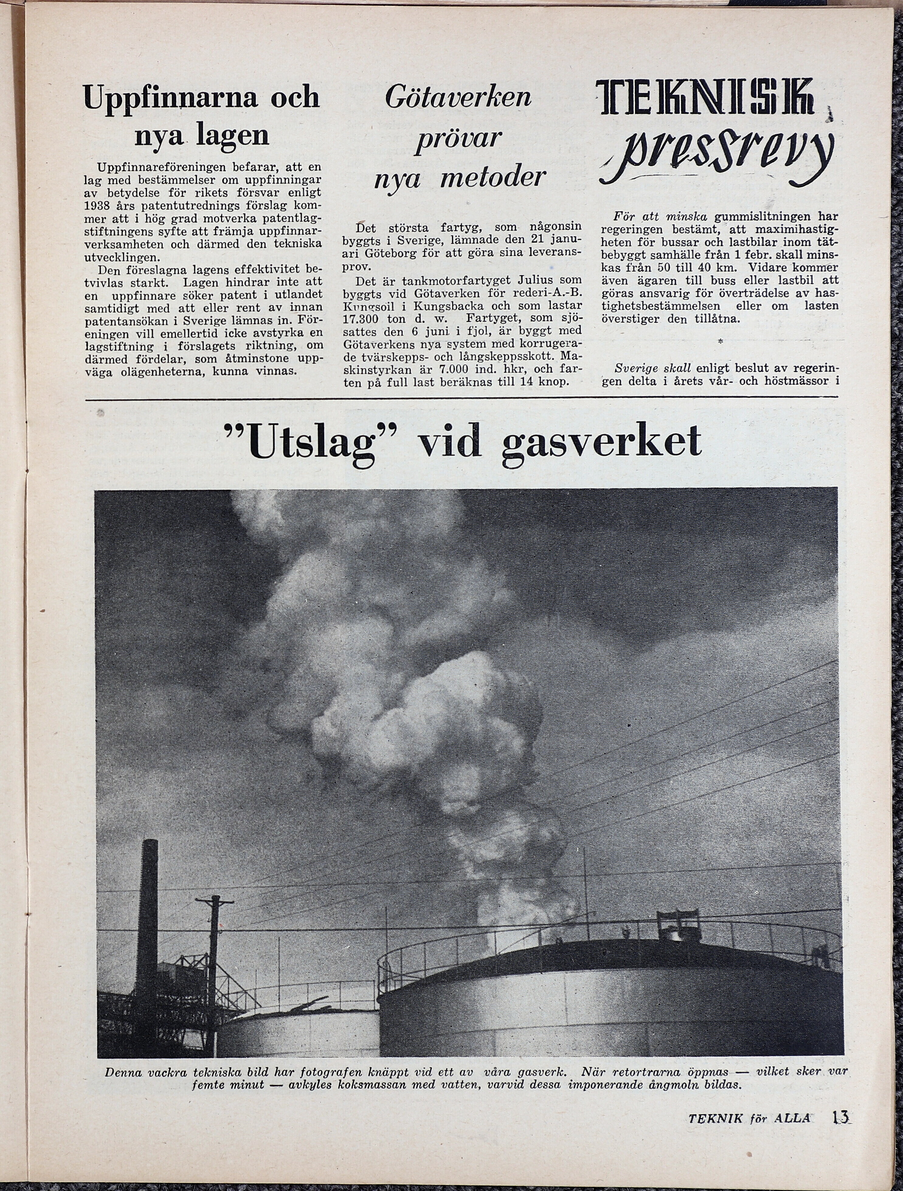 Full resolution (JPEG) - On this page / på denna sida - Teknisk rundhorisont - Uppfinnarna och nya lagen - Götaverken prövar nya metoder - ”Utslag” vid gasverket - Teknisk pressrevy