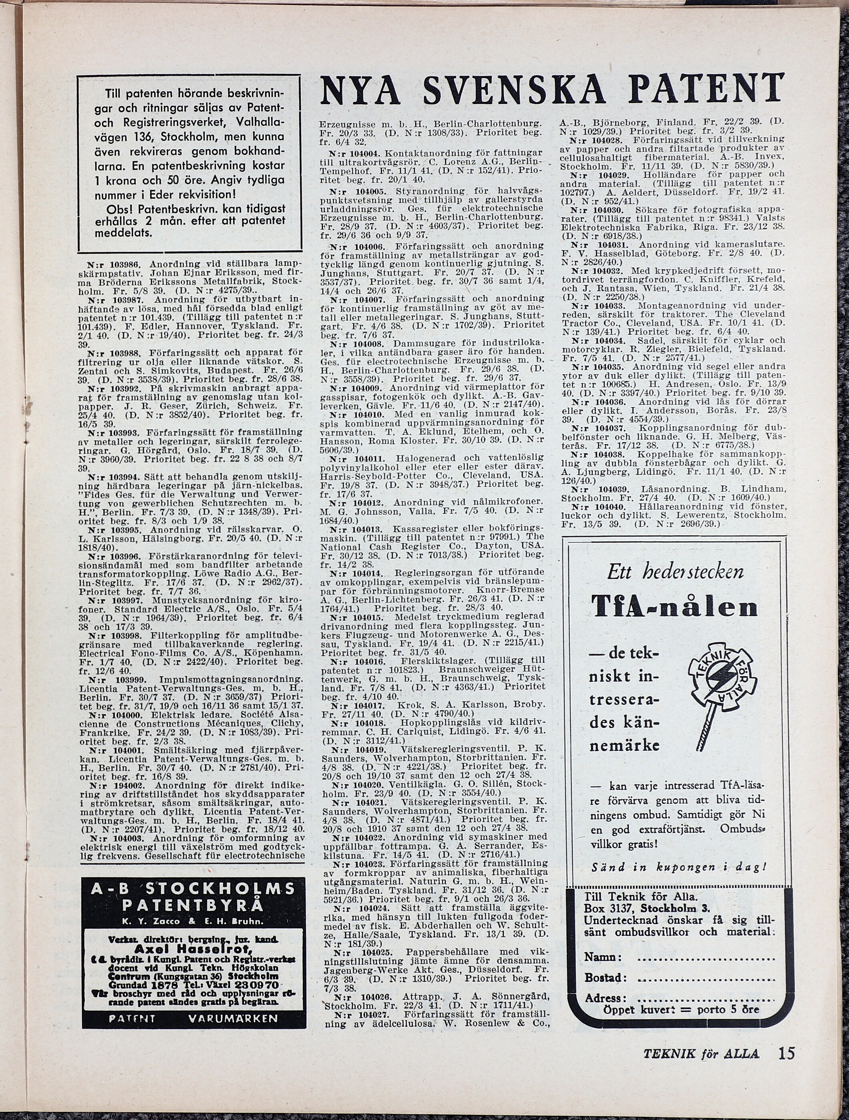 Full resolution (JPEG) - On this page / på denna sida - Nya svenska patent - Annonser