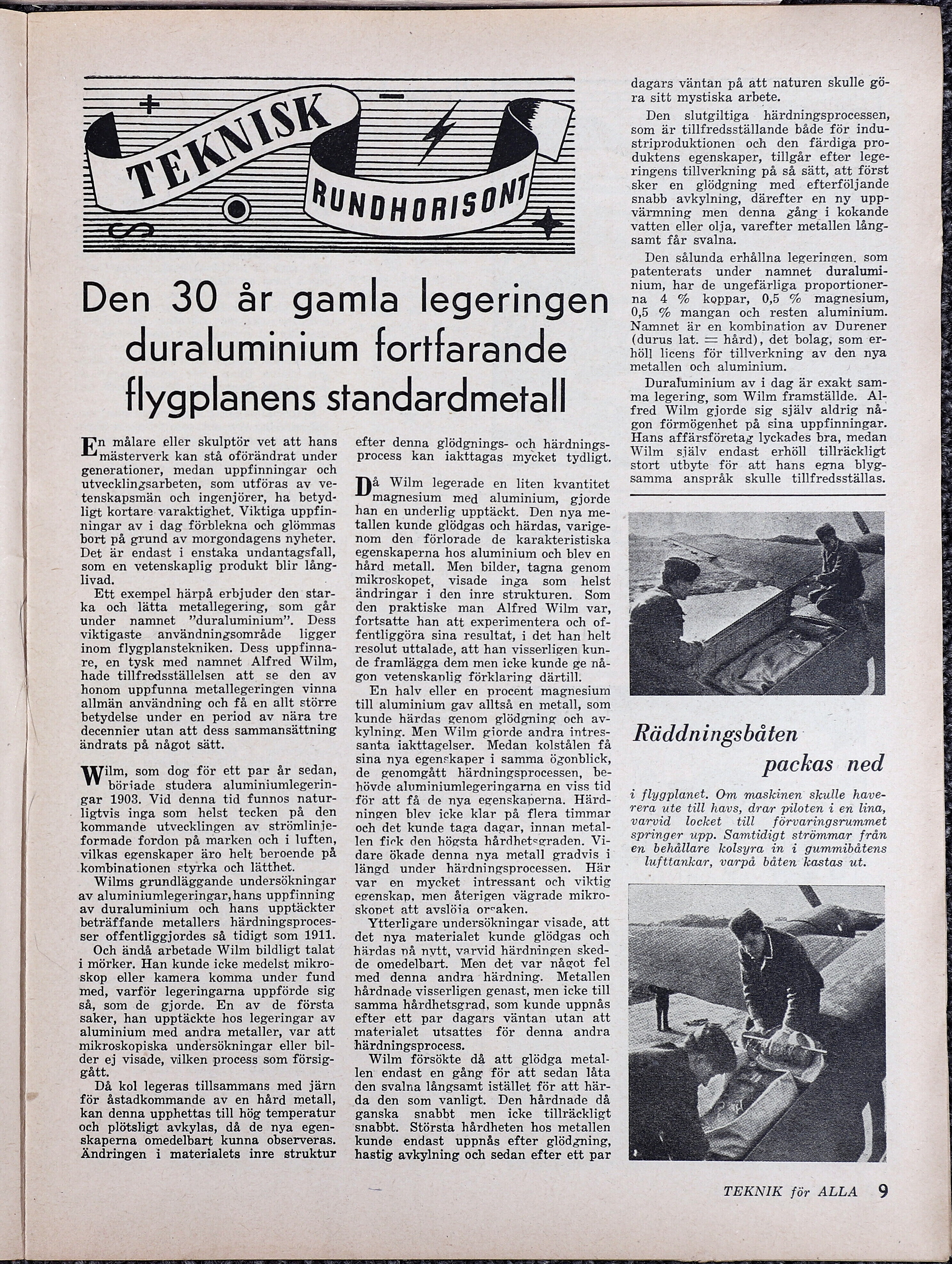 - Den 30 år gamla legeringen duraluminium fortfarande flygplanens standardmetall
