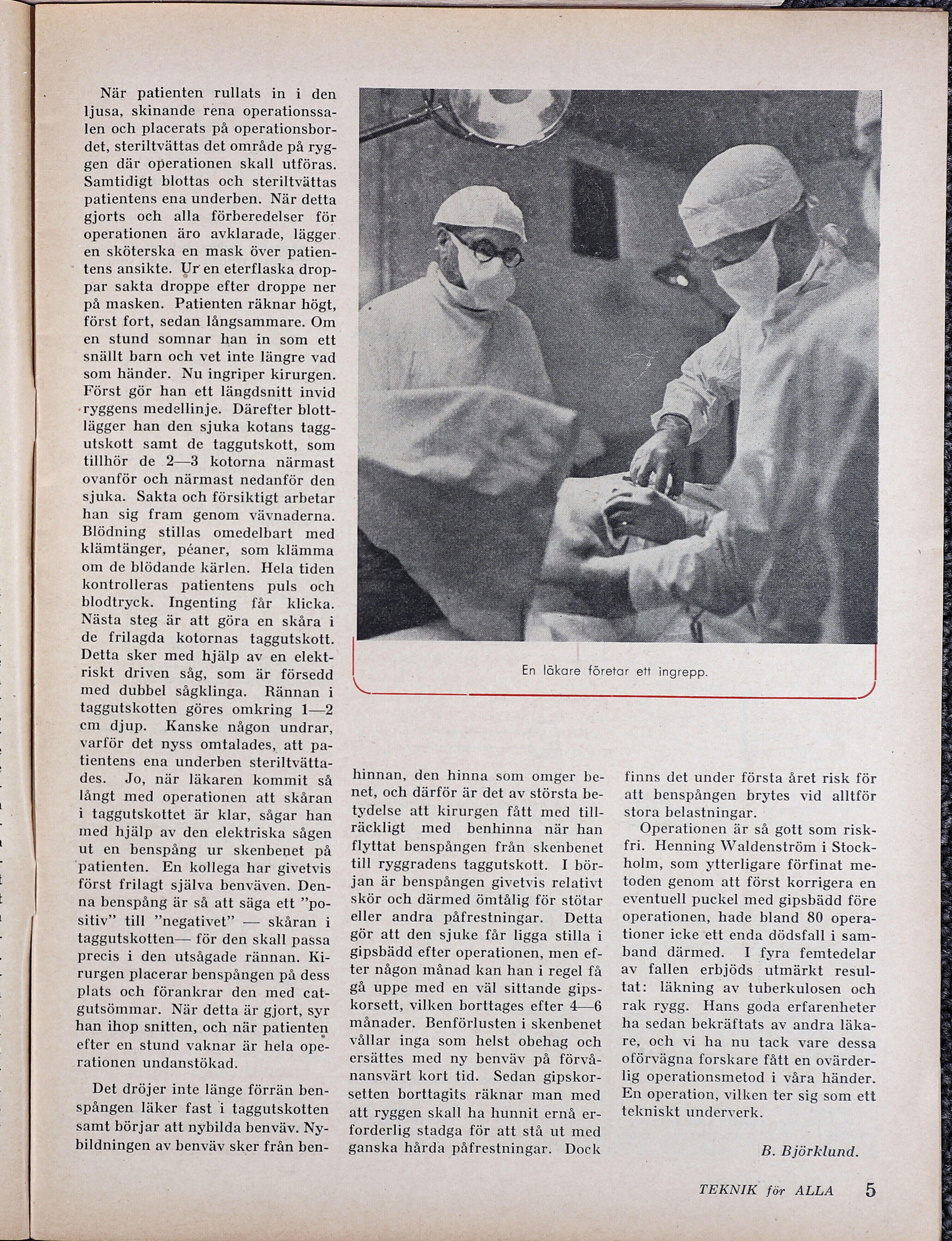 - Tekniken i medicinen: Puckelrygg opereras bort, av Bertil Björklund