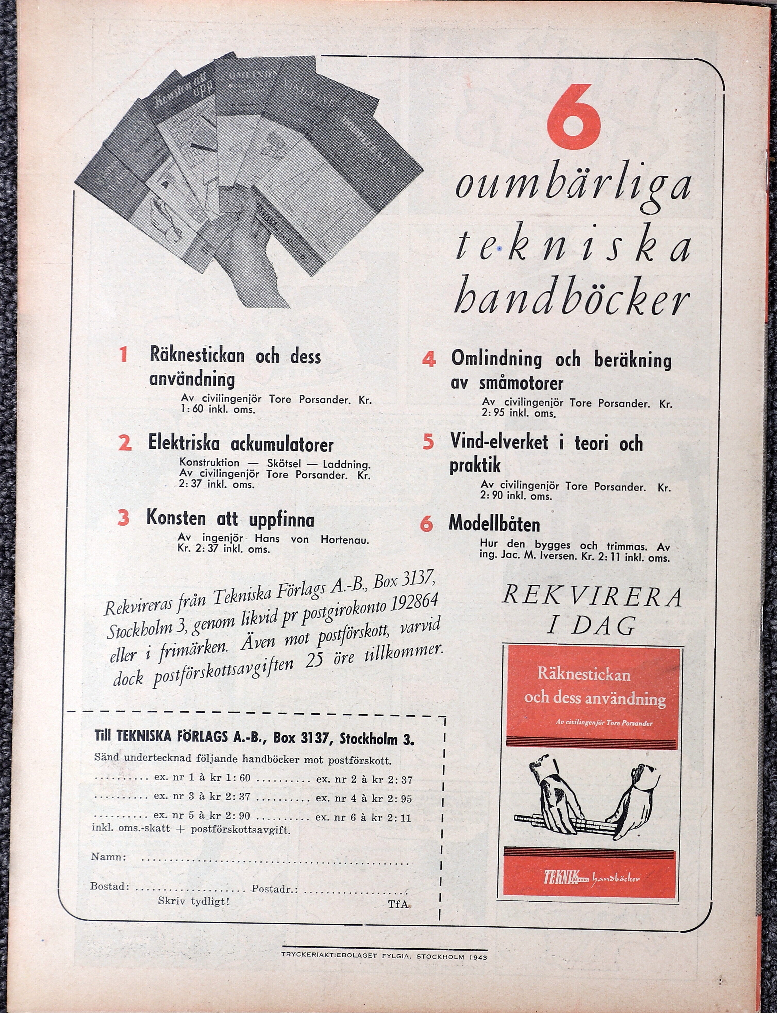 Till TEKNISKA FÖRLAGS A.-B., Box 3137, Stockholm 3.