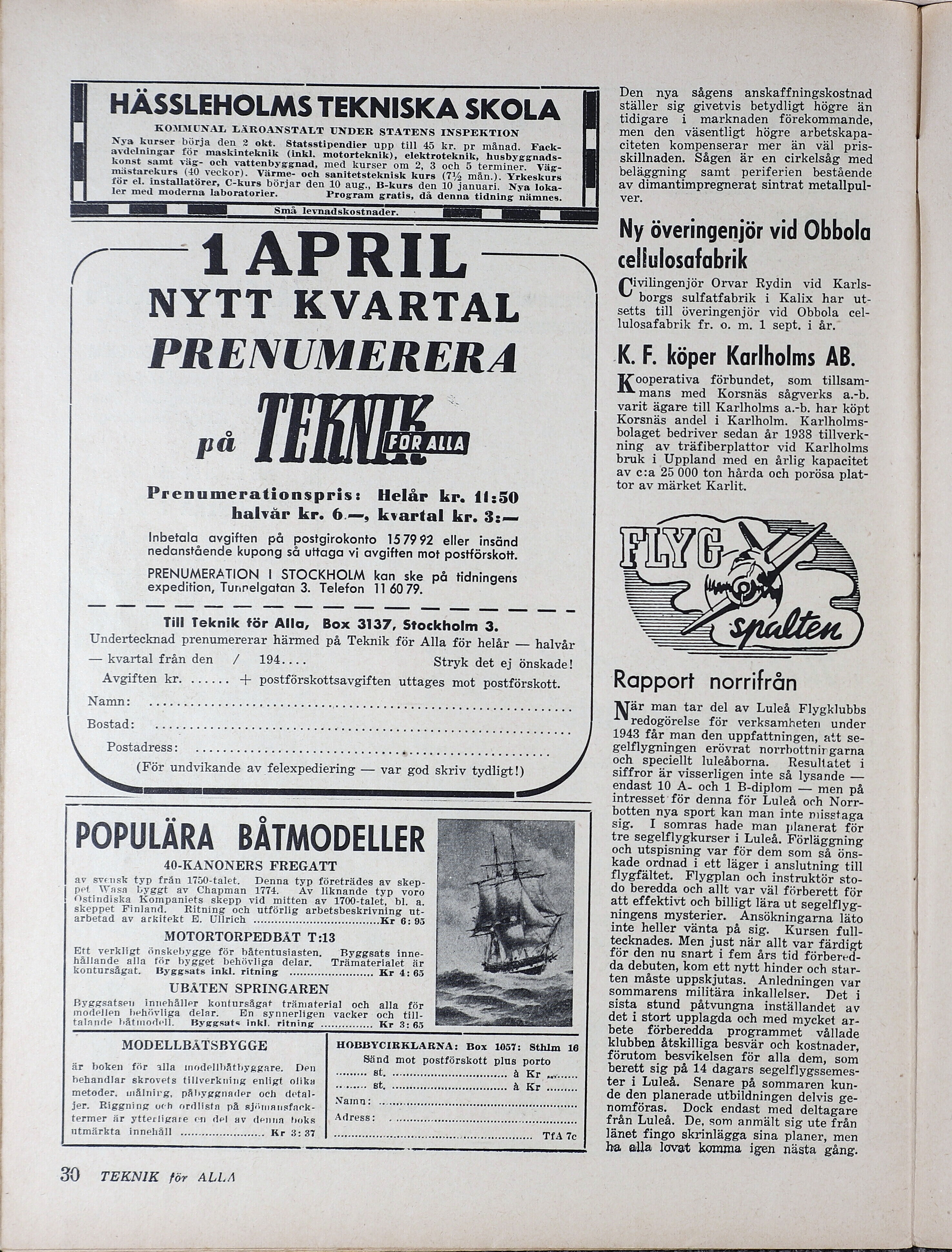 Undertecknad prenumererar härmed på Teknik för Alla för helår — halvår