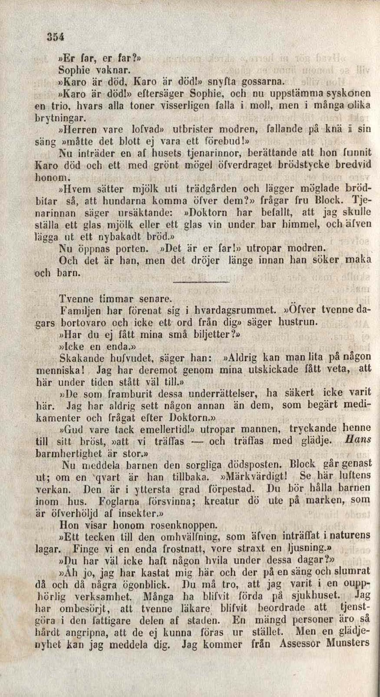 »Karo är död!» eftersäger Sophie, ocli nu uppstämma syskonen