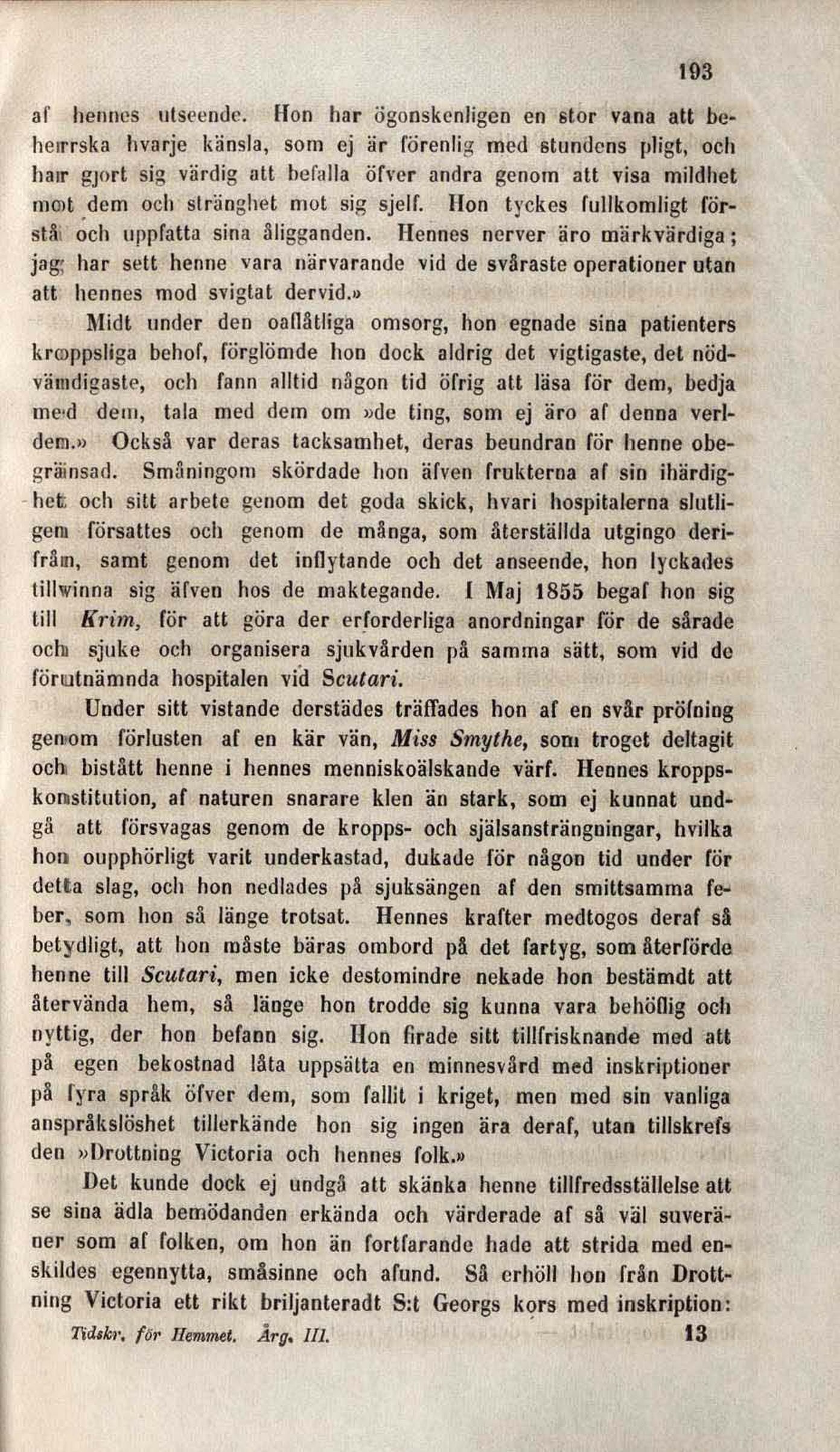 mot dem och stränghet mot sig sjelf. Hon tyckes fullkomligt