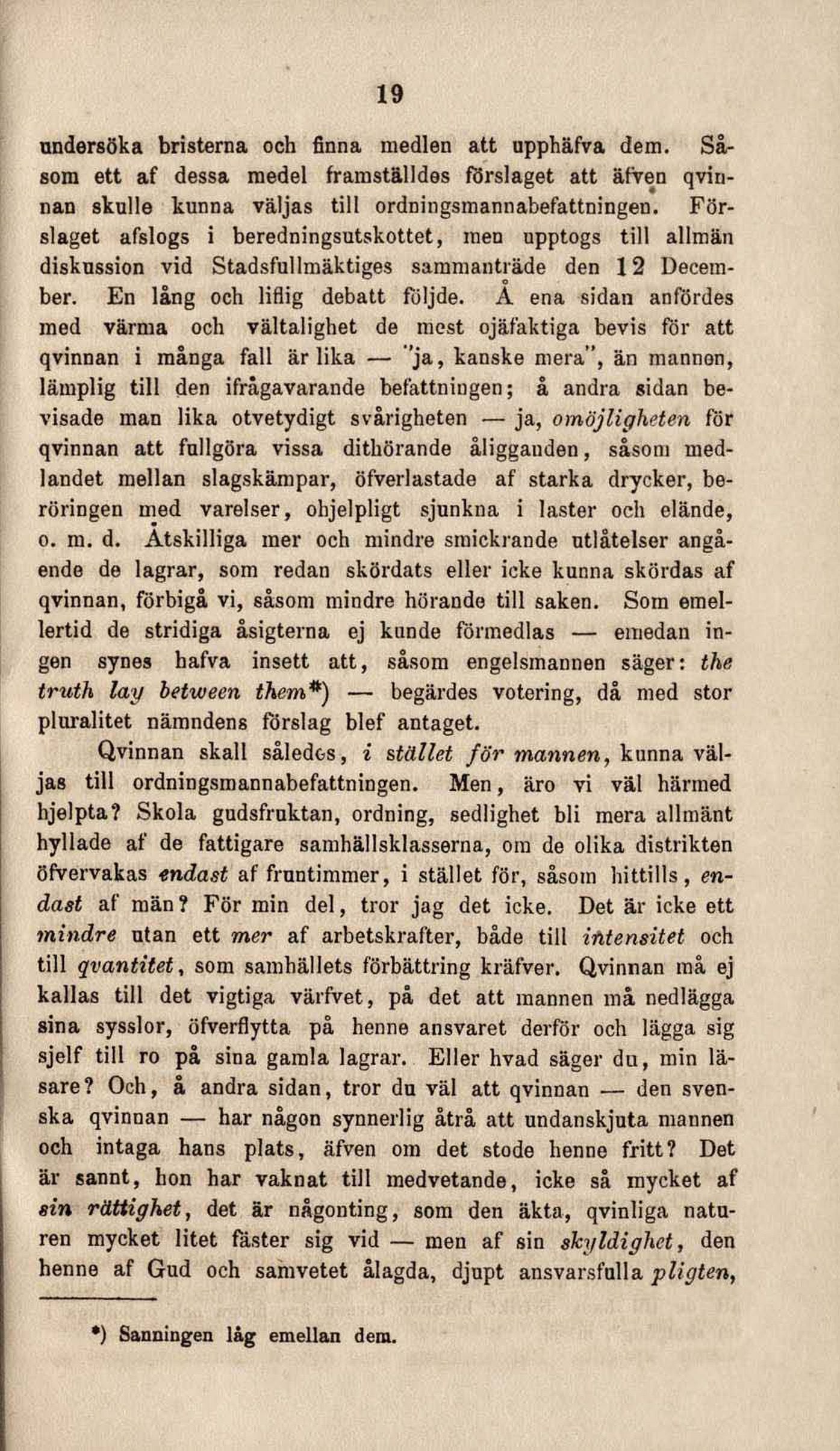 qvinnan i många fall är lika — "ja, kanske mera", än mannon,