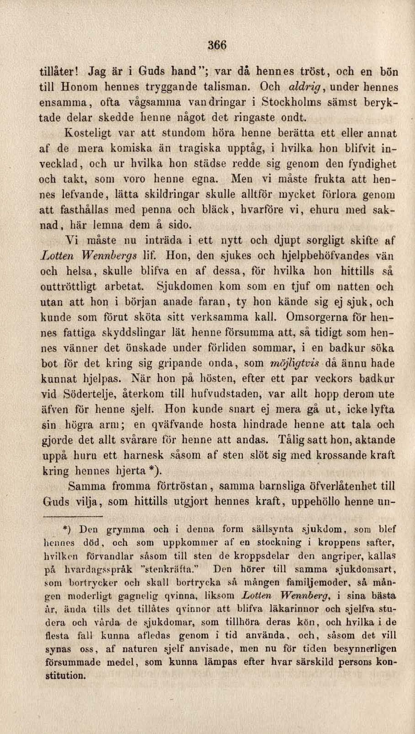 tillåter! Jag är i Guds hand"; var då hennes tröst, och en bön
