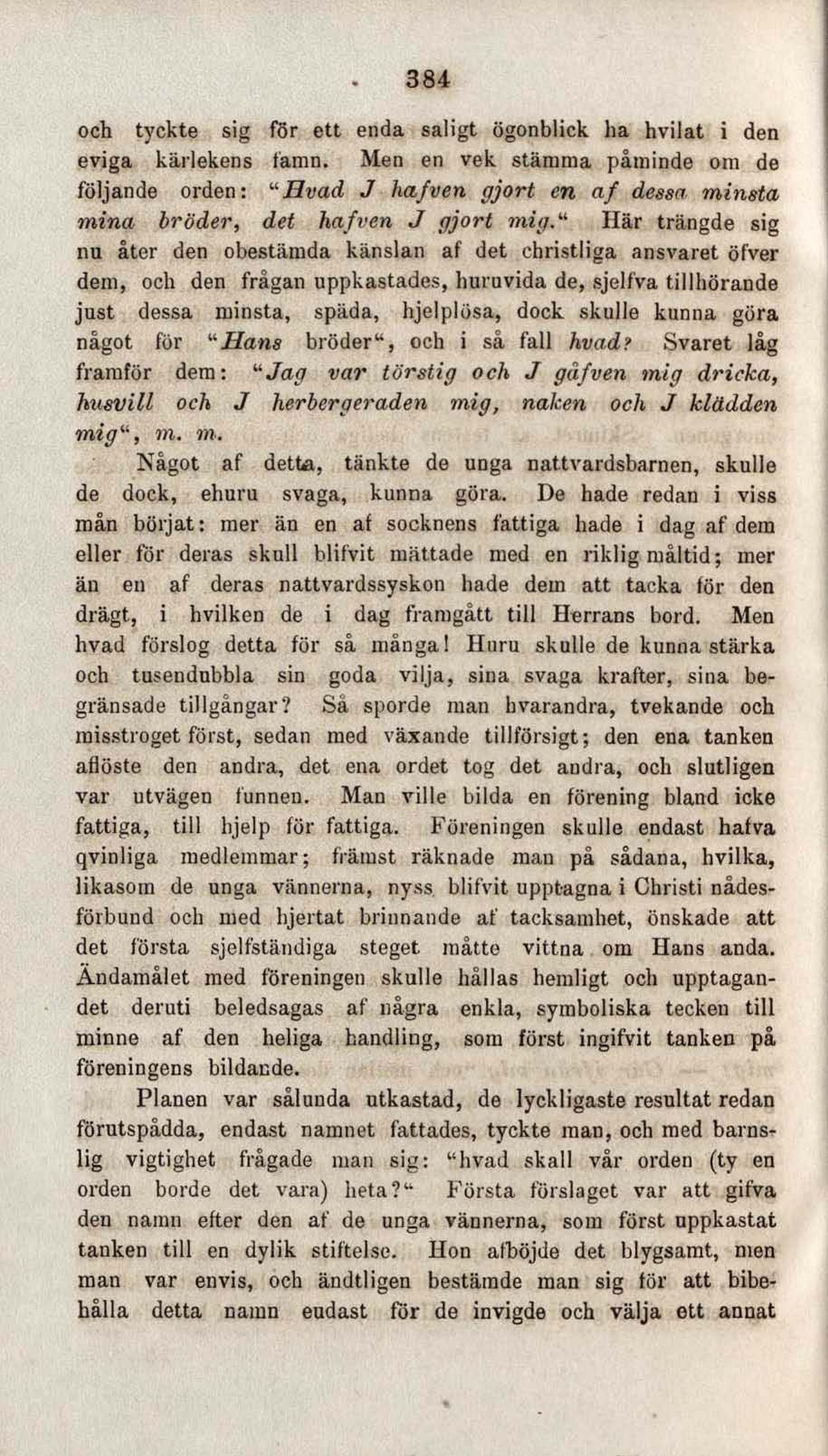följande orden: "Hvad J hafven gjort en af dessa minsta