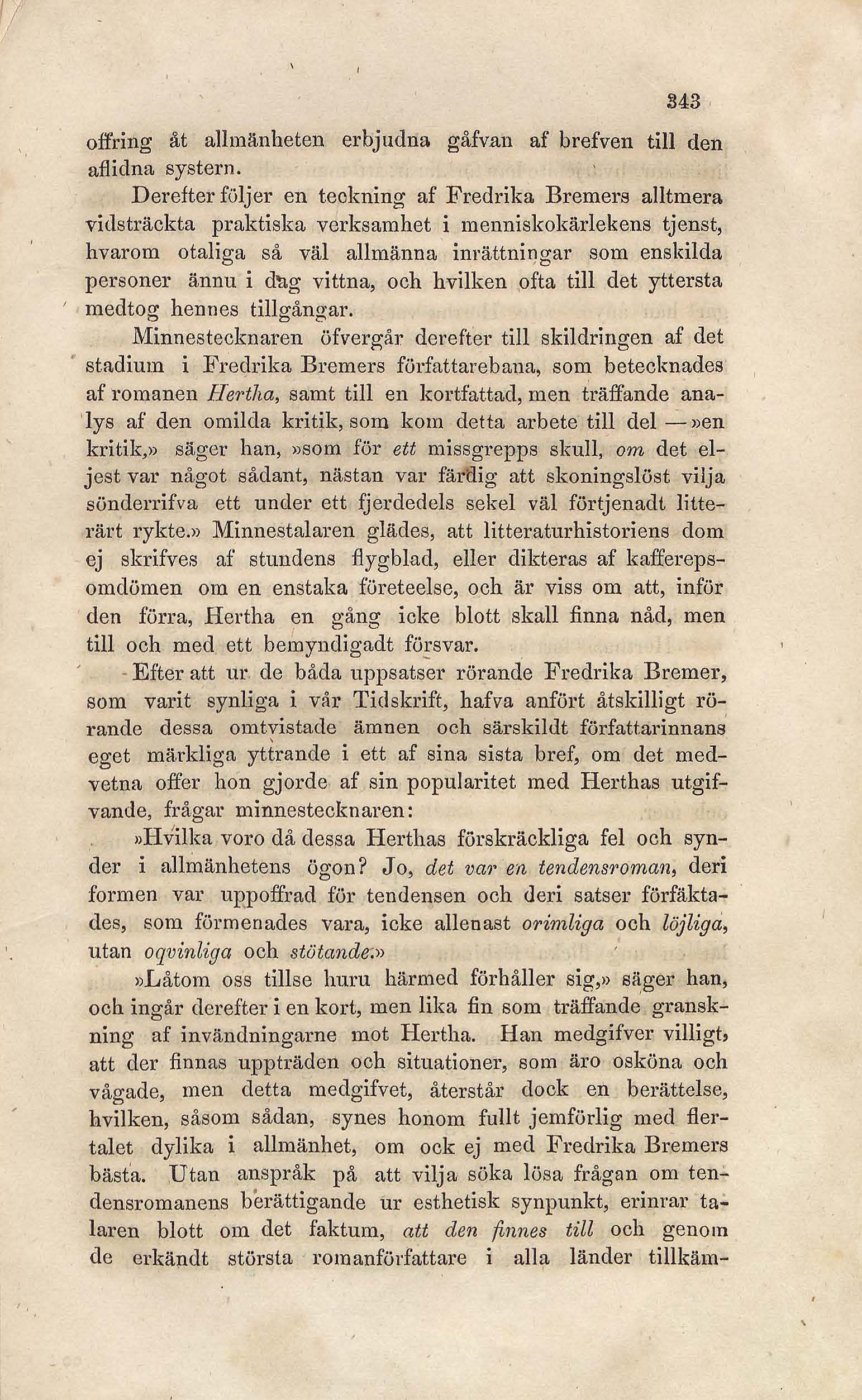flertalet dylika i allmänhet, om ock ej med Fredrika Bremers