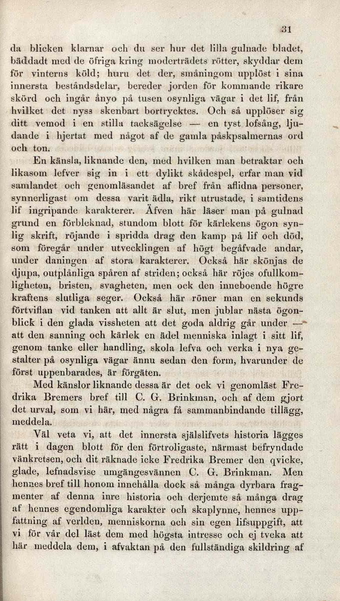 Fredrika Bremers bref till C. G. Brinkinan, och af dem gjort