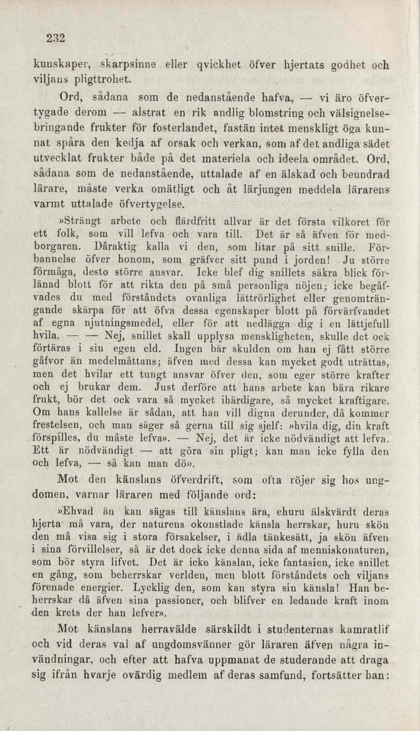 som bör styra lifvet. Det är icke känslan, icke fantasien, icke snillet