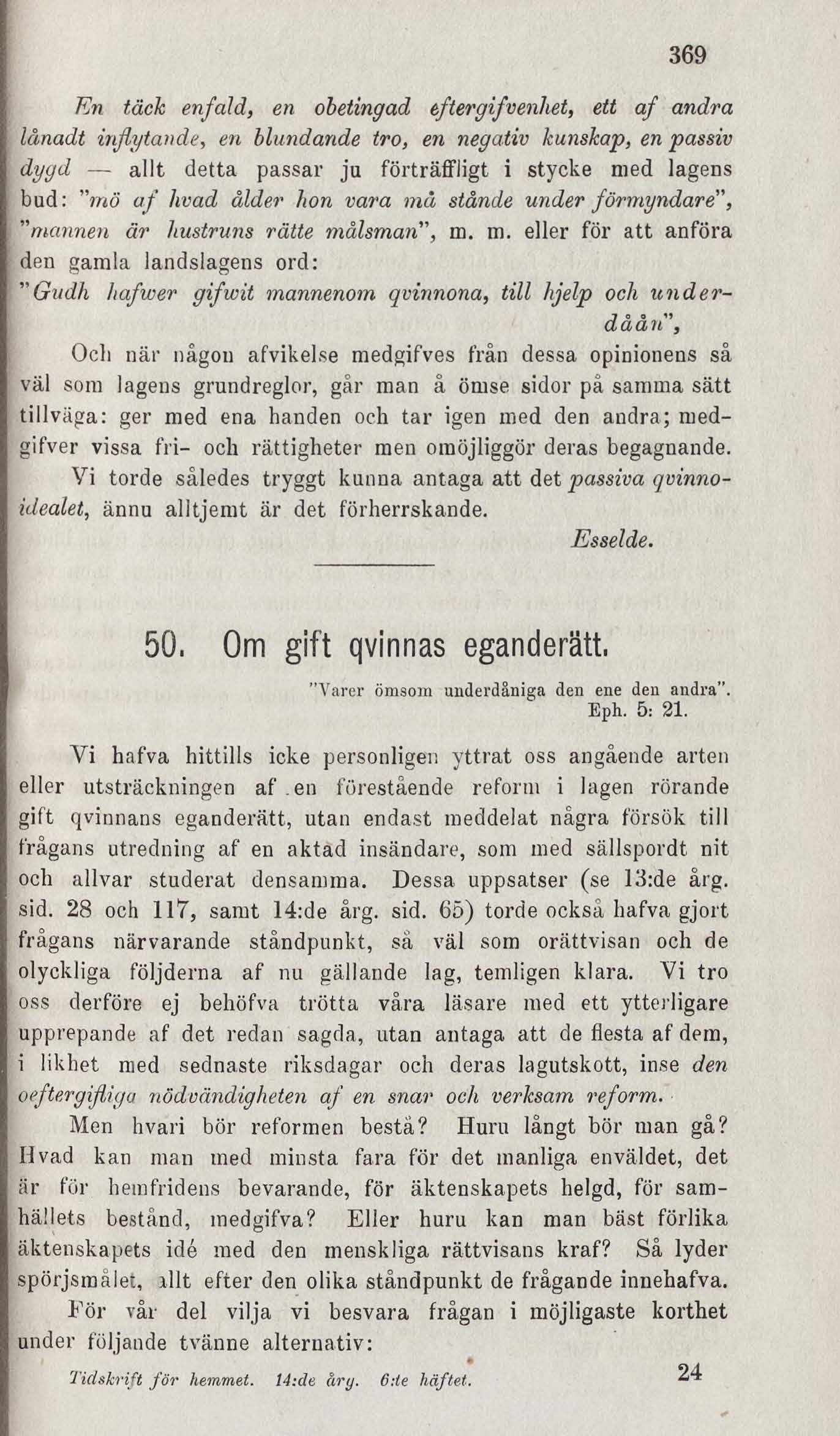 gift qvinnans eganderätt, utan endast meddelat några försök till