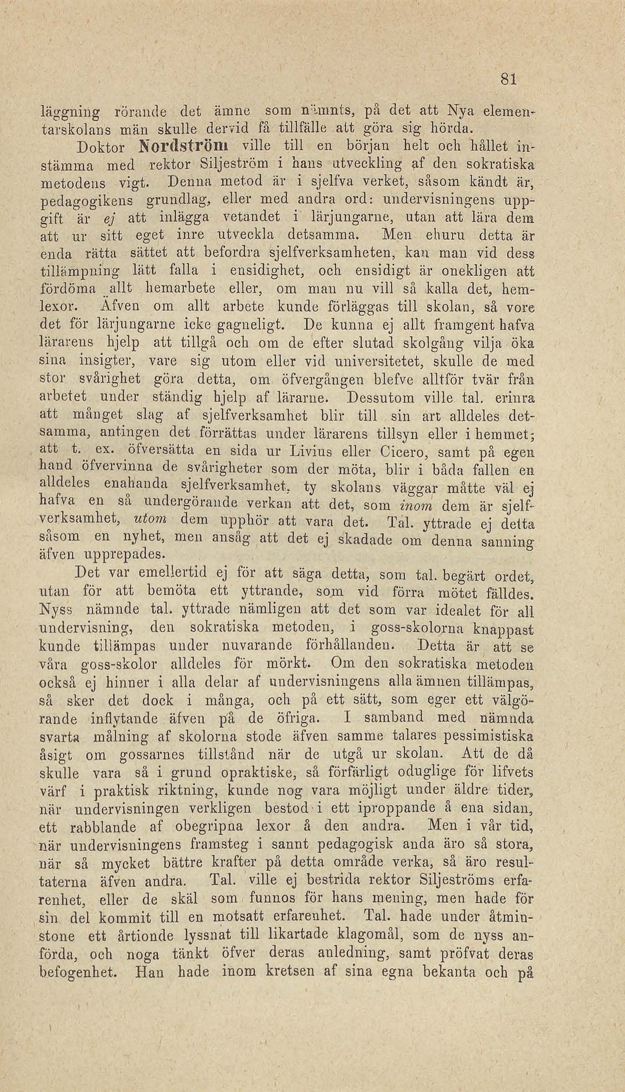 instämma med rektor Siljeström i hans utveckling af den sokratiska