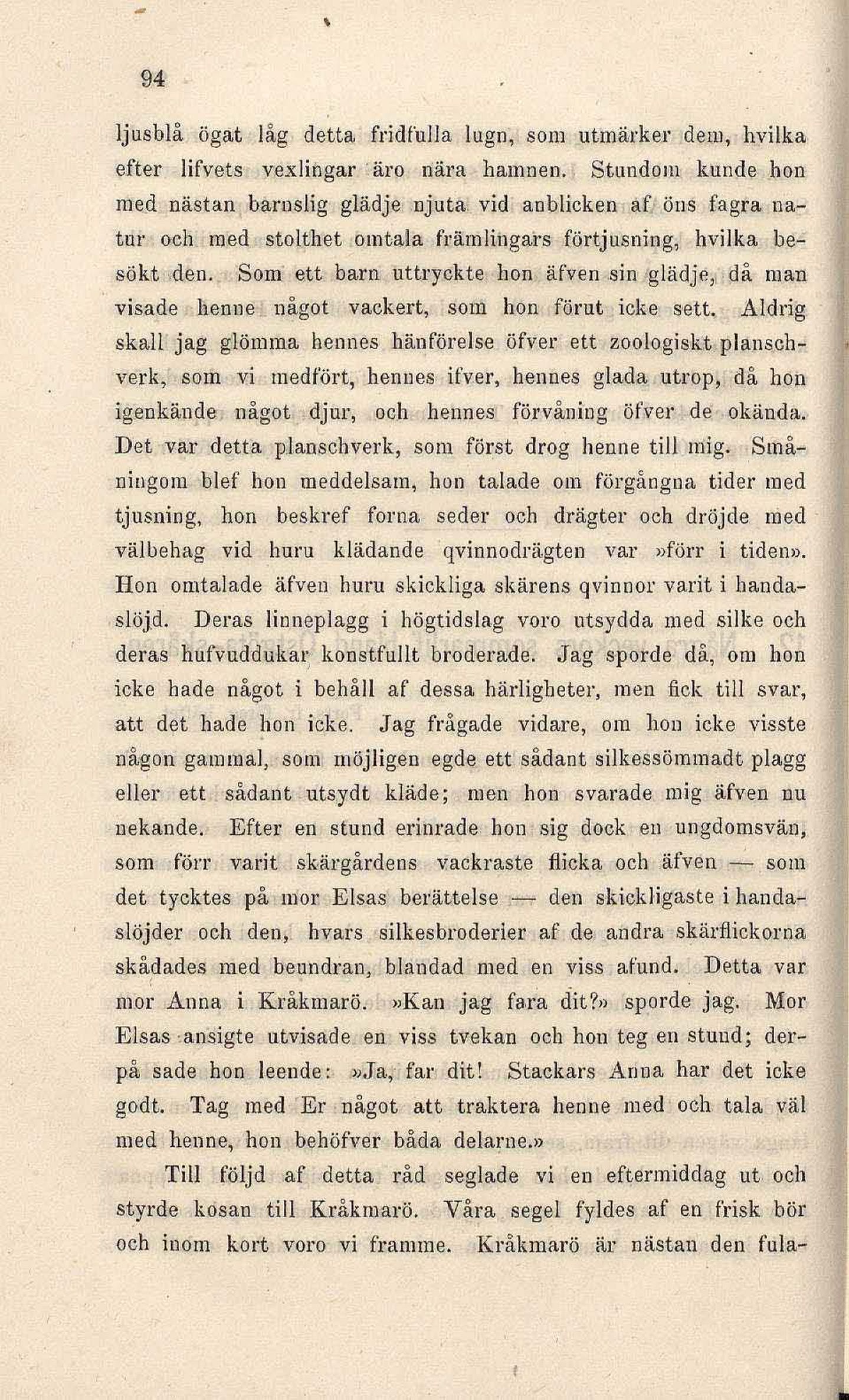 mor Anna i Kråkmarö. »Kan jag fara dit?» sporde jag. Mor
