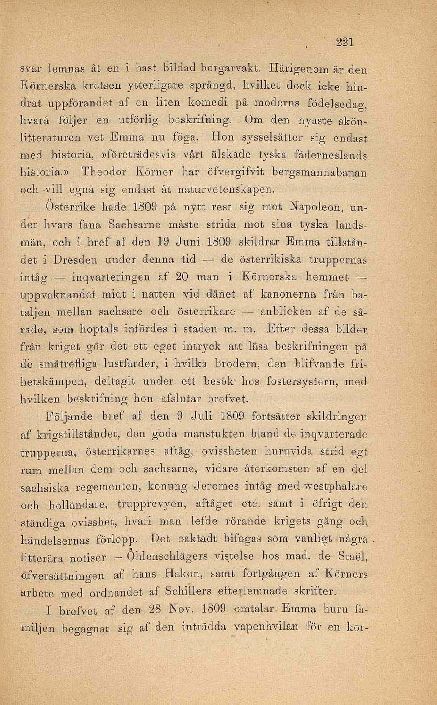 landsmän, och i bref af den 19 Juni 1809 skildrar Emma