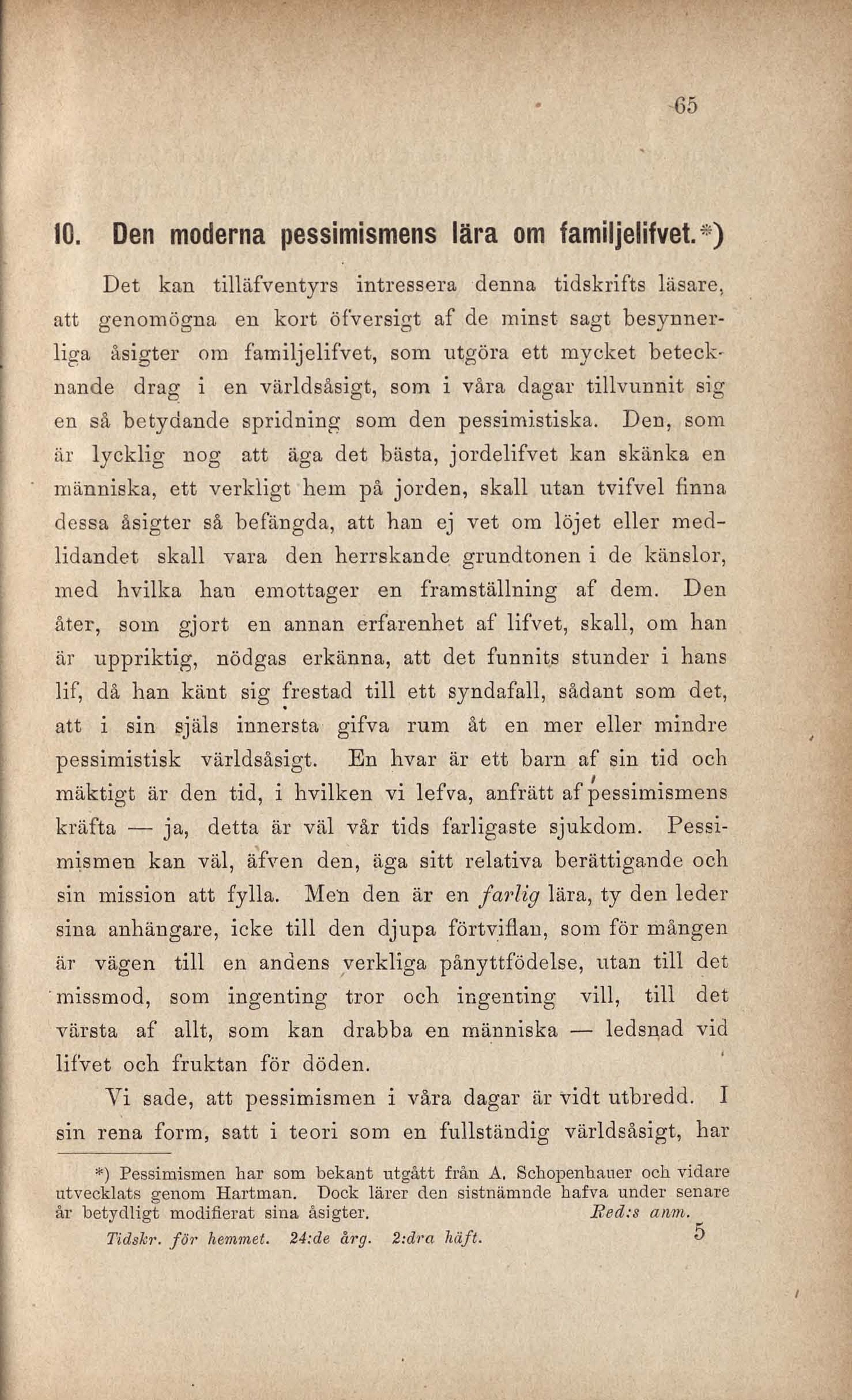 10. Den moderna pessimismens lära om familjelifvet.*)