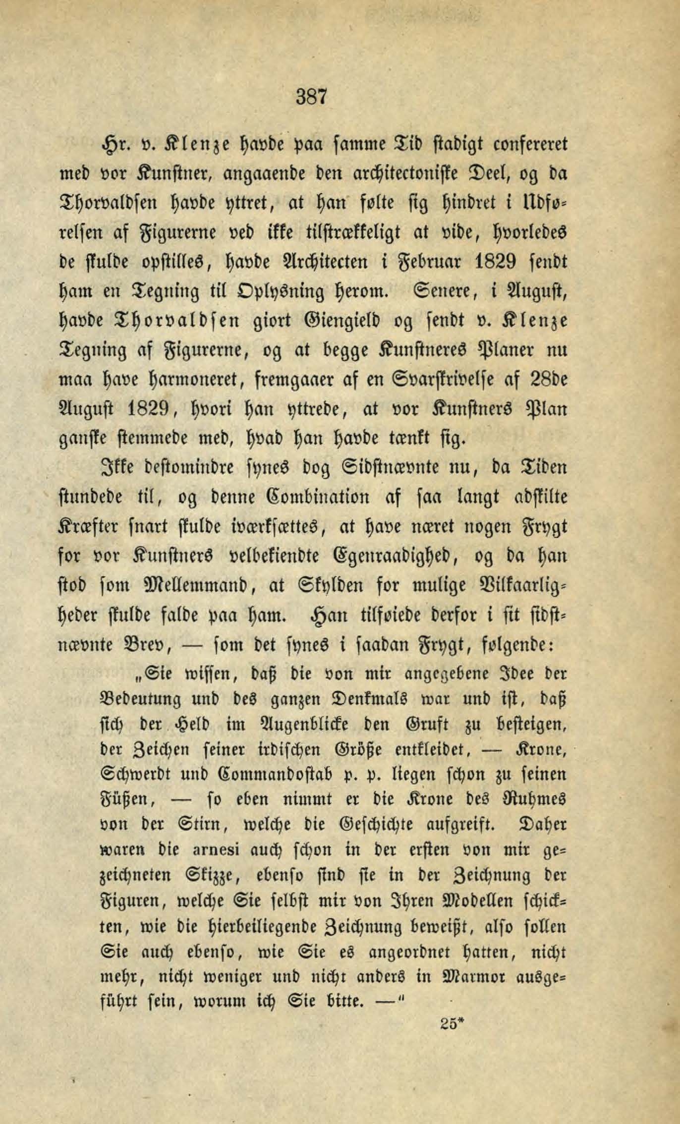 August 1829, hvori han yttrede, at vor Kunstners Plan