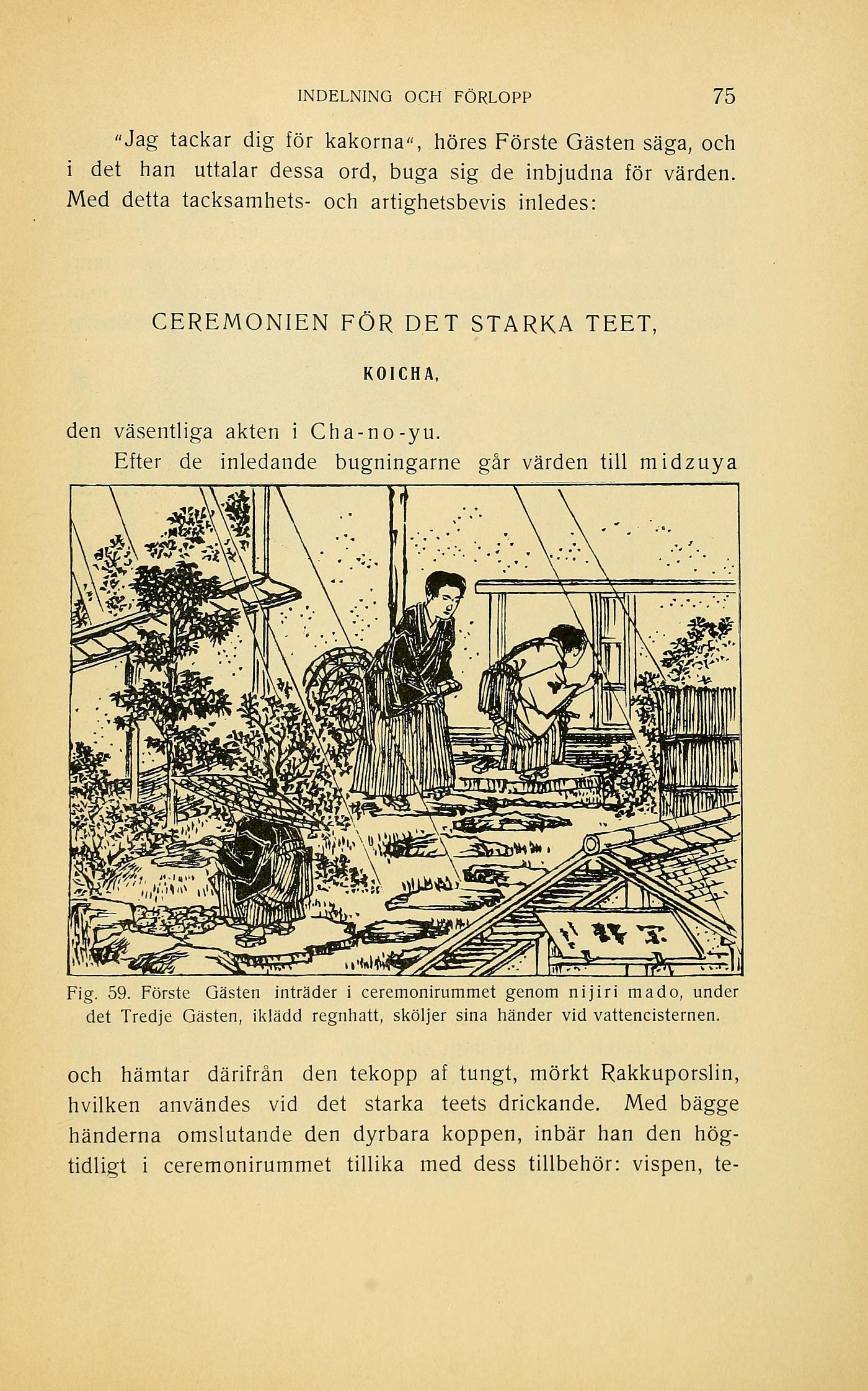 Fig. 59. Förste Gästen inträder i ceremonirummet genom nijiri ma do, under