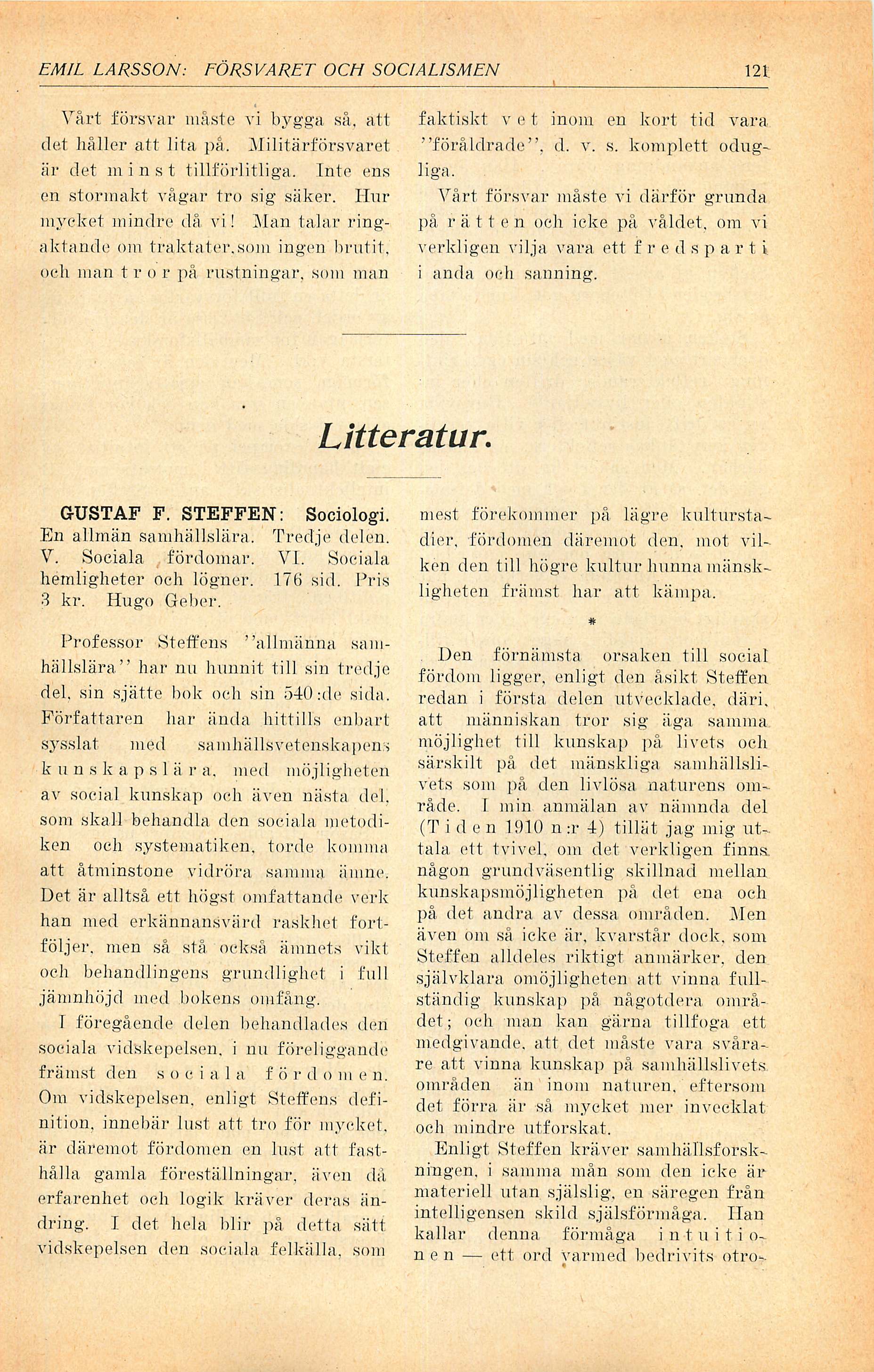GUSTAF F. STEFFEN: Sociologi.