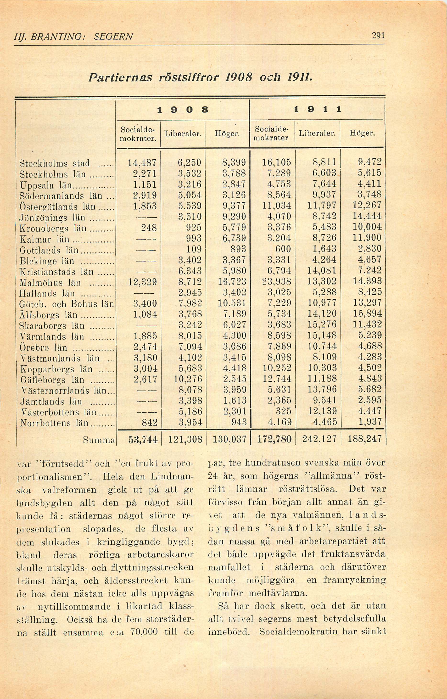 Partiernas röstsiffror 1908 och 1911.